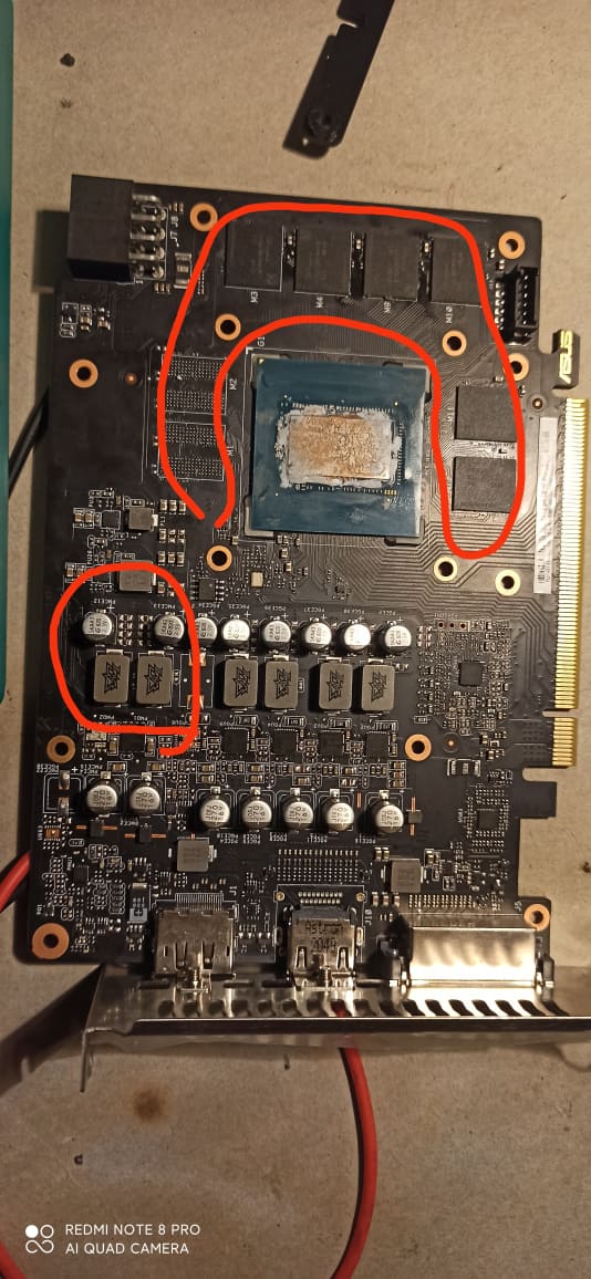Hello everyone, i have a gtx 1660s new, it's was working perfectly then one day after rebooting the pc, I see smoke going out from the card, so I turned off and opened the GPU to see what it's burned, and I found one MOSFET for the VRAM was Dead, so I change new one and the same thing happened the MOSFET burn, so I have a short somewhere, so I checked the voltage and found that resistance on 1.8v was low, also the output of the vmem inductor and the caps until the memory was shorted to ground.