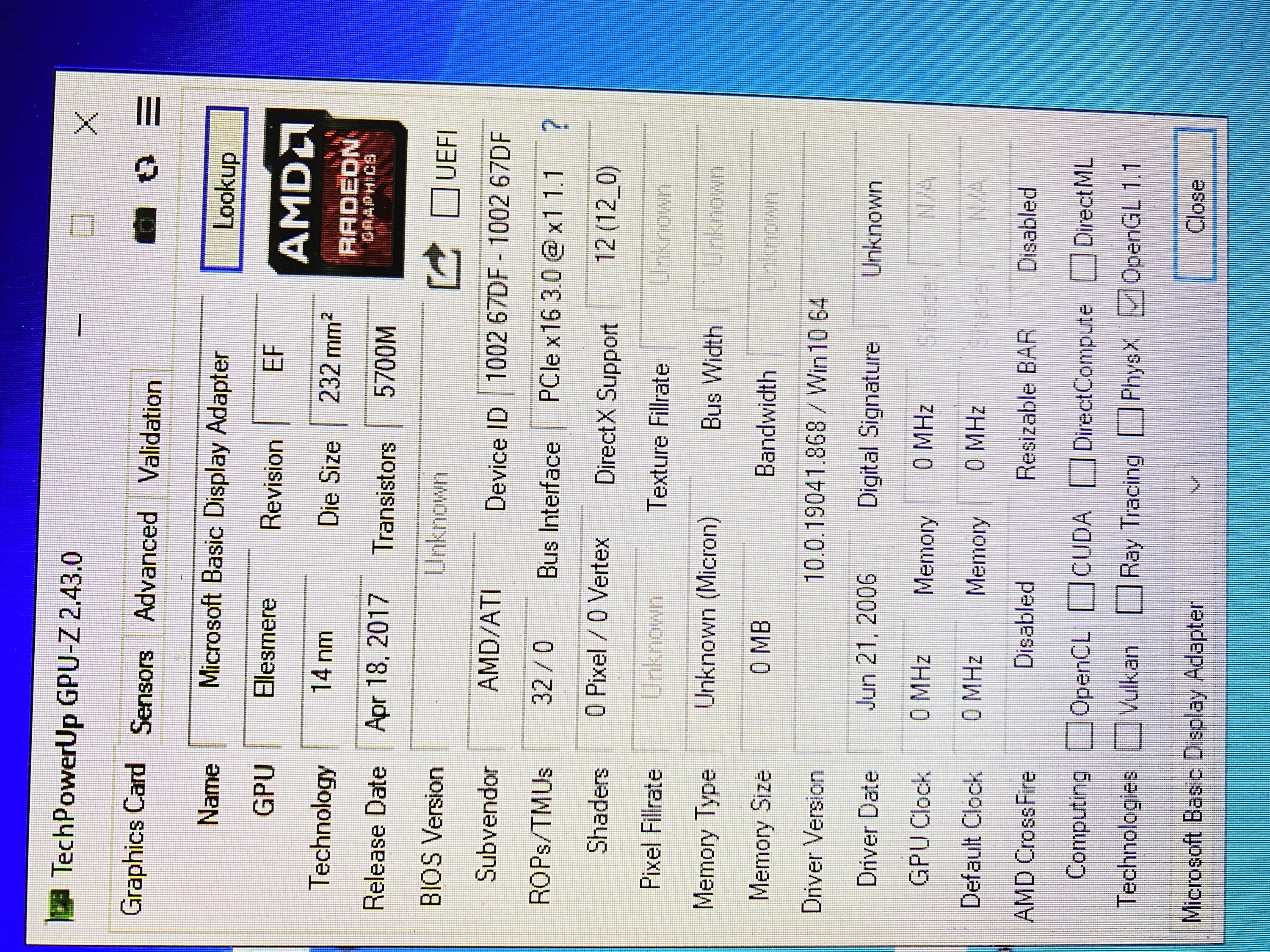 I have an RX570 that is detected in Windows as Microsoft basic display adapter. And GPUz does not read the bios and does not recognize the memory. I have changed and reflashed the bios but that did. not fix it. Help, please.