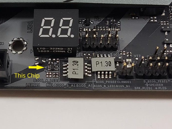 Hello, I need help figuring out what chip came unattached from my motherboard (Asrock Z390 Taichi). I found a picture online of the chip. However I cannot find a boardview or a high resolution picture to identify what it was.