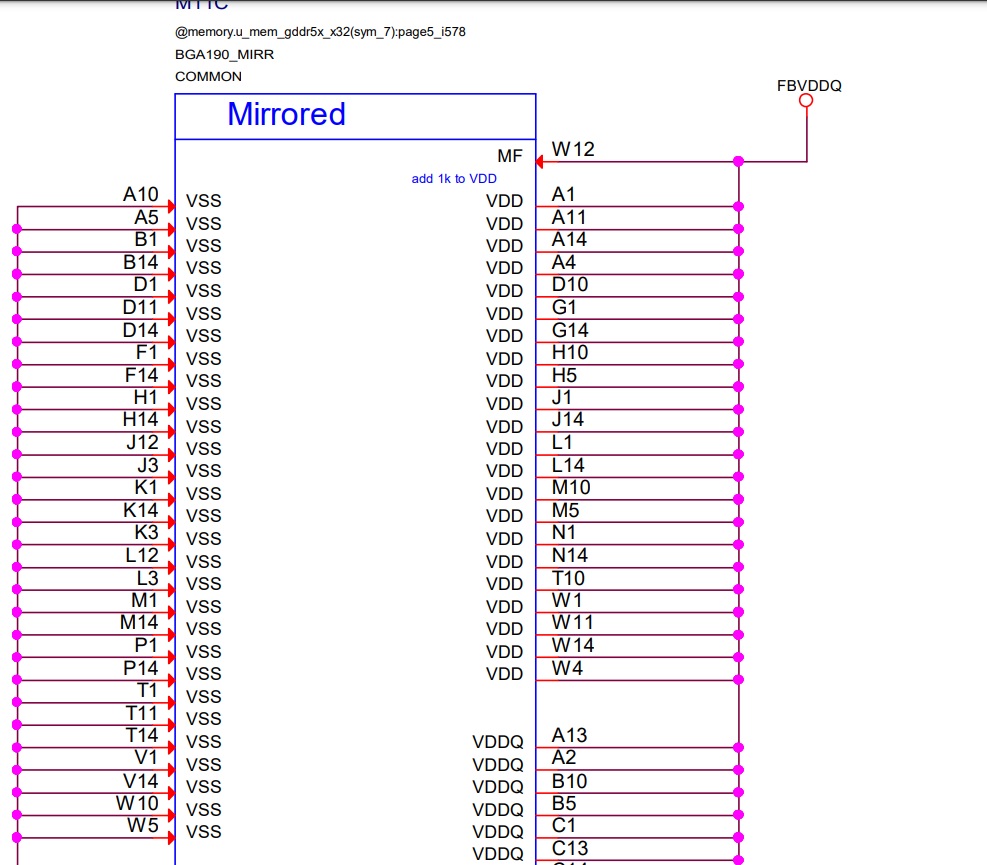 2) A low ohm short on a different power lane on the chip (VDD and VDDQ are both supplied from FBVDDQ)