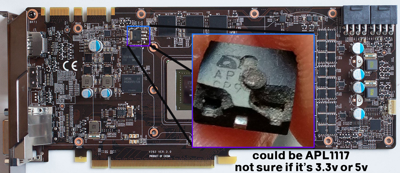 if anyone here has the schematics for this exact card please feel free to send me the file or if you ever had a similar issue i would love it if you can provide some feedback (i am not a professional repairman, just trying to my best to salvage this one)