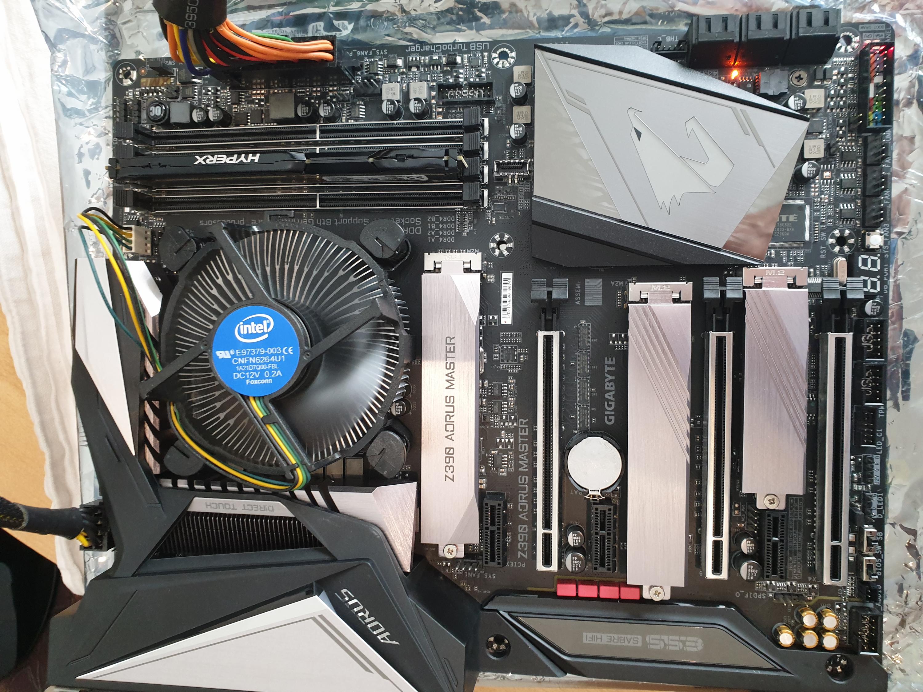 The Corsair TX950 Watt was used as the power supply (there is only one 8-pin connector, but that shouldn't be a problem). If you hold your finger on the CPU, after 10 minutes the CPU gets slightly hot (it looks like it's not getting enough power).
