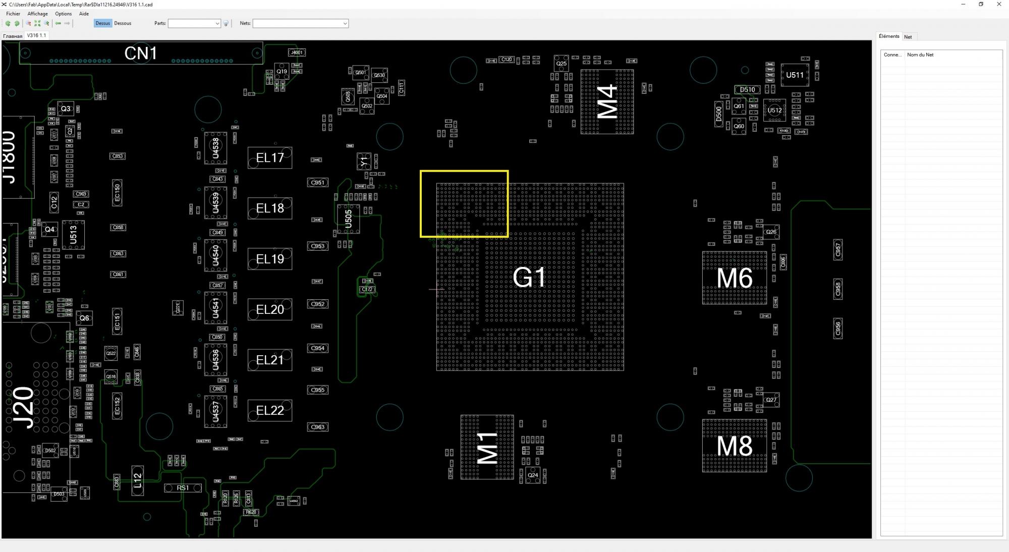 After verification with the thermal camera and injection of a very small voltage lower than 0.95 V, part of the CPU at the top left heats up and nothing else.