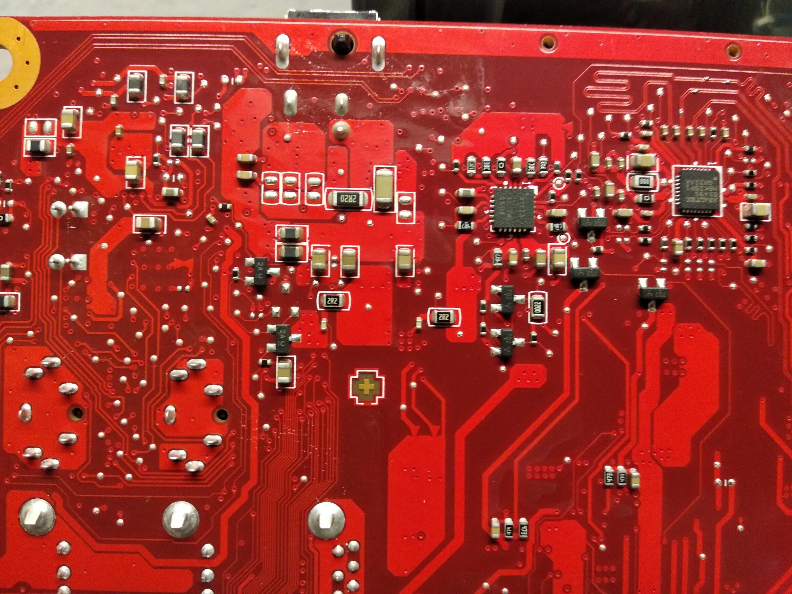 Then i found a chip near the power connector called INA219 Zerø-Drift, Bidirectional Current/Power Monitor. I measured a short on the Vs pin. Having the termocamera and a power supply I injected 2Amps, then 3Amps, the voltage rose maximum to 1,3-1,4V. The only thing that warmed up was the southbridge.