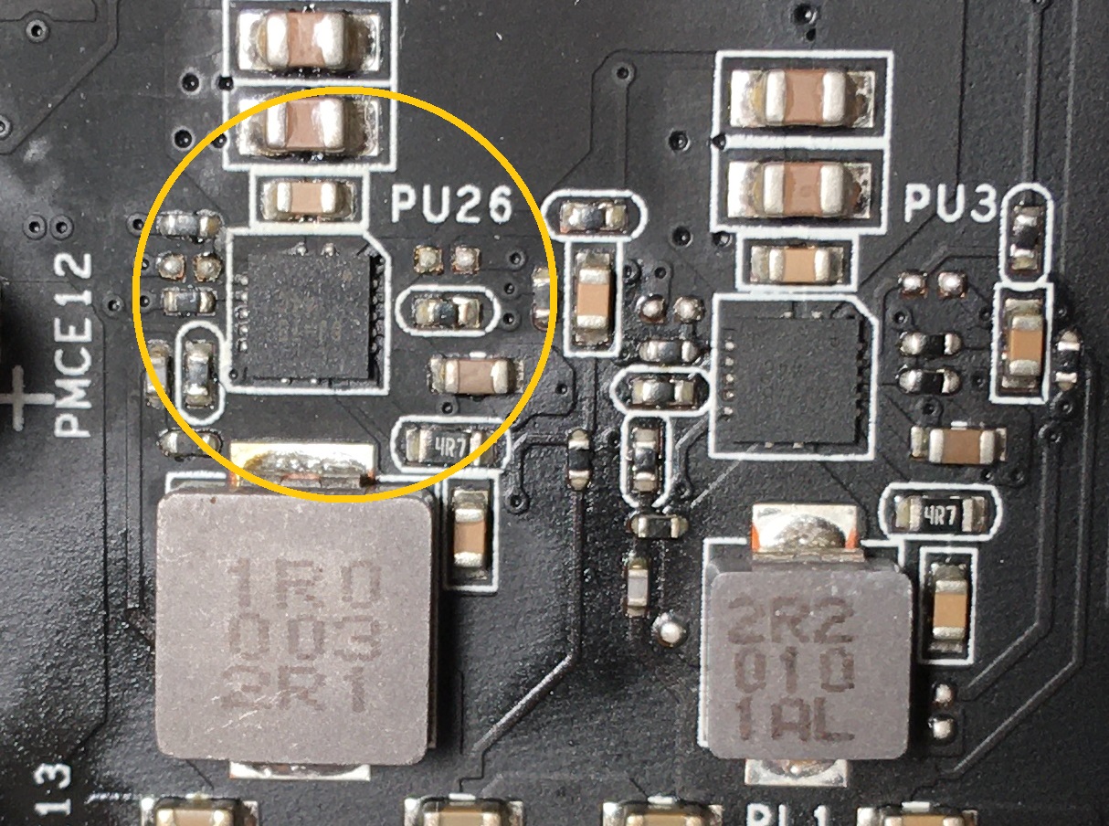 Hello ,Same problem here but mine its an tuf 1660 super with diferent chips ,they say AEAM 119 , by googling it, i found symylar Synchronous Buck Converters that are produced by Alpha-Omega, maybe this are too . but by the code i cant find. on pinout apear be exactly the same as RT6220.