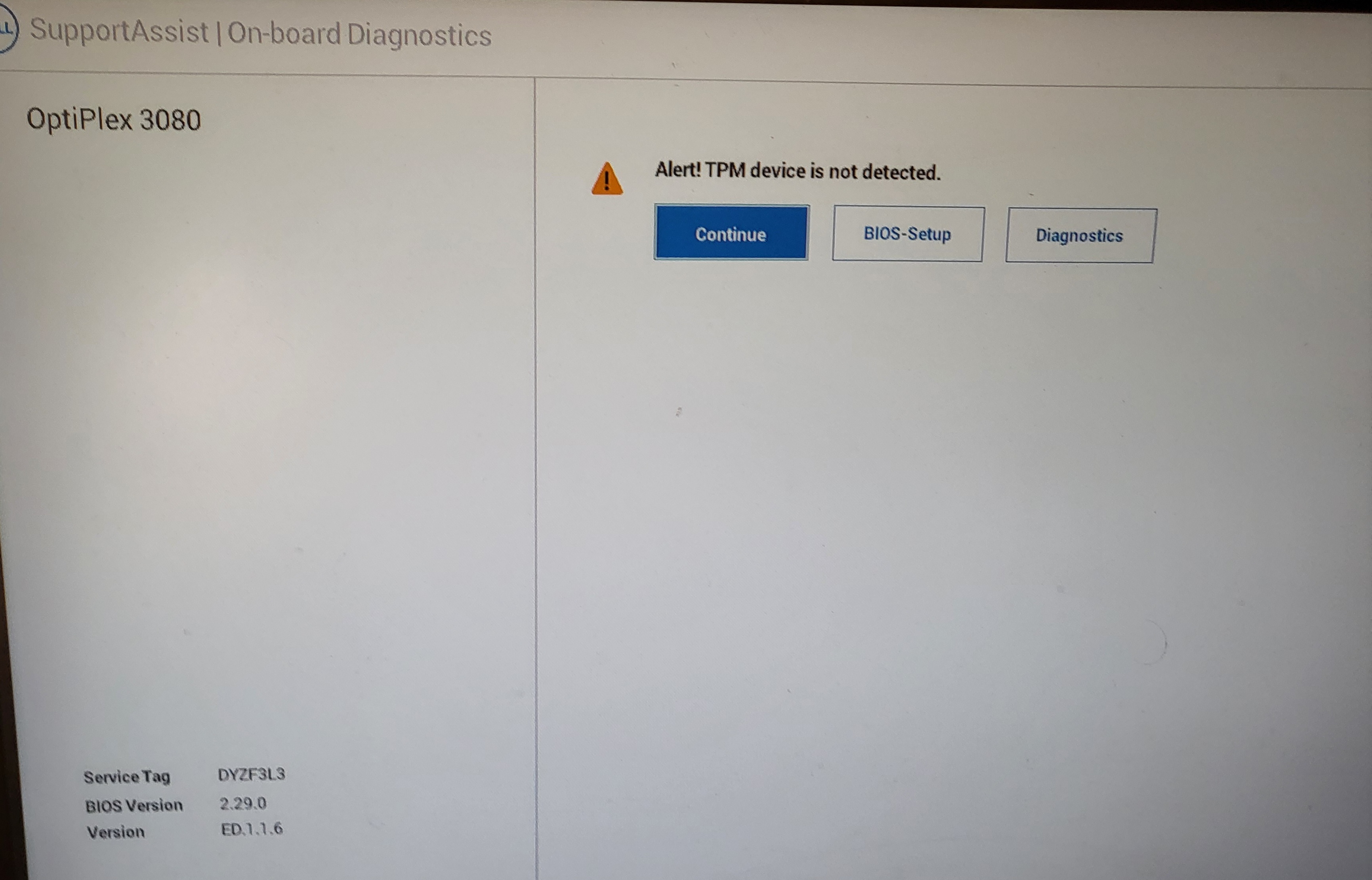 I disabled Absolute, rebooted and TPM is not showing in the BIOS anymore but I don't get the error in the picture anymore.