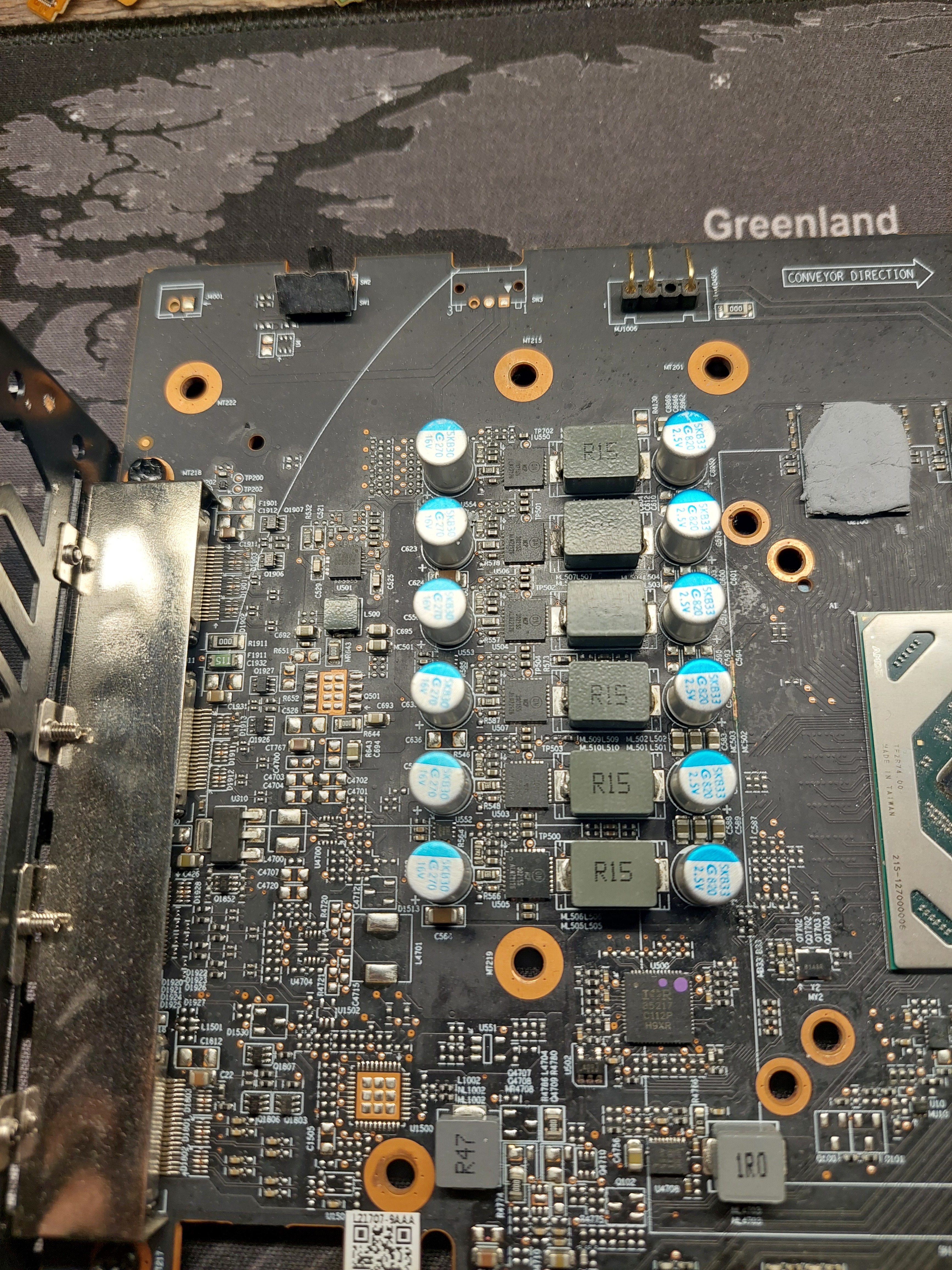 That said, I think I have a problem with one of the memory rails. The top two drMOS on the right side (see picture) power the memory....