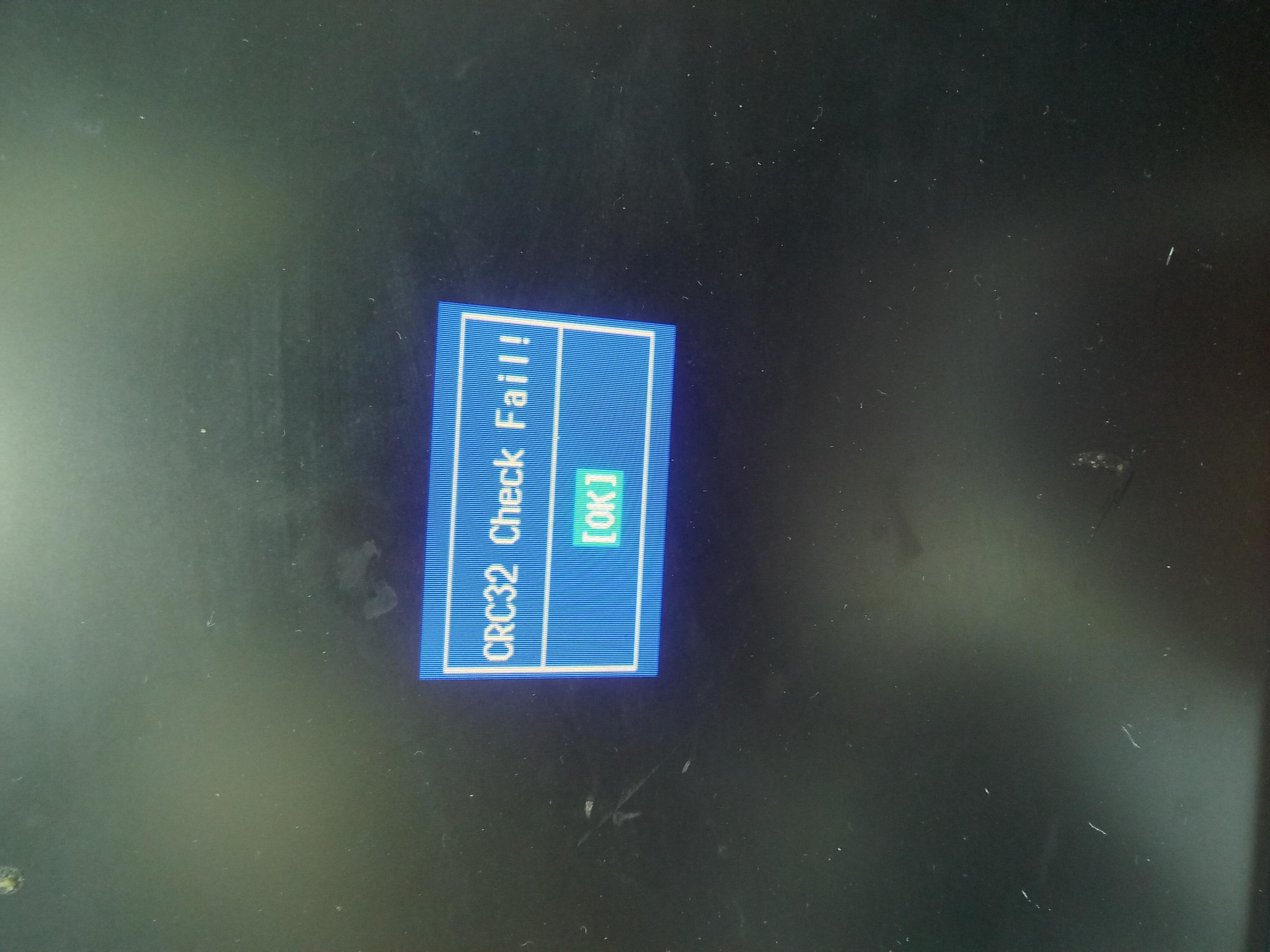 then it gives me the option to setup new admin password but after i do that it then gives me error: CRC32 Check Fail and then goes back to Admin password setup screen. i have attached the pics of the errors. any help will be greatly appreaciated.↵
