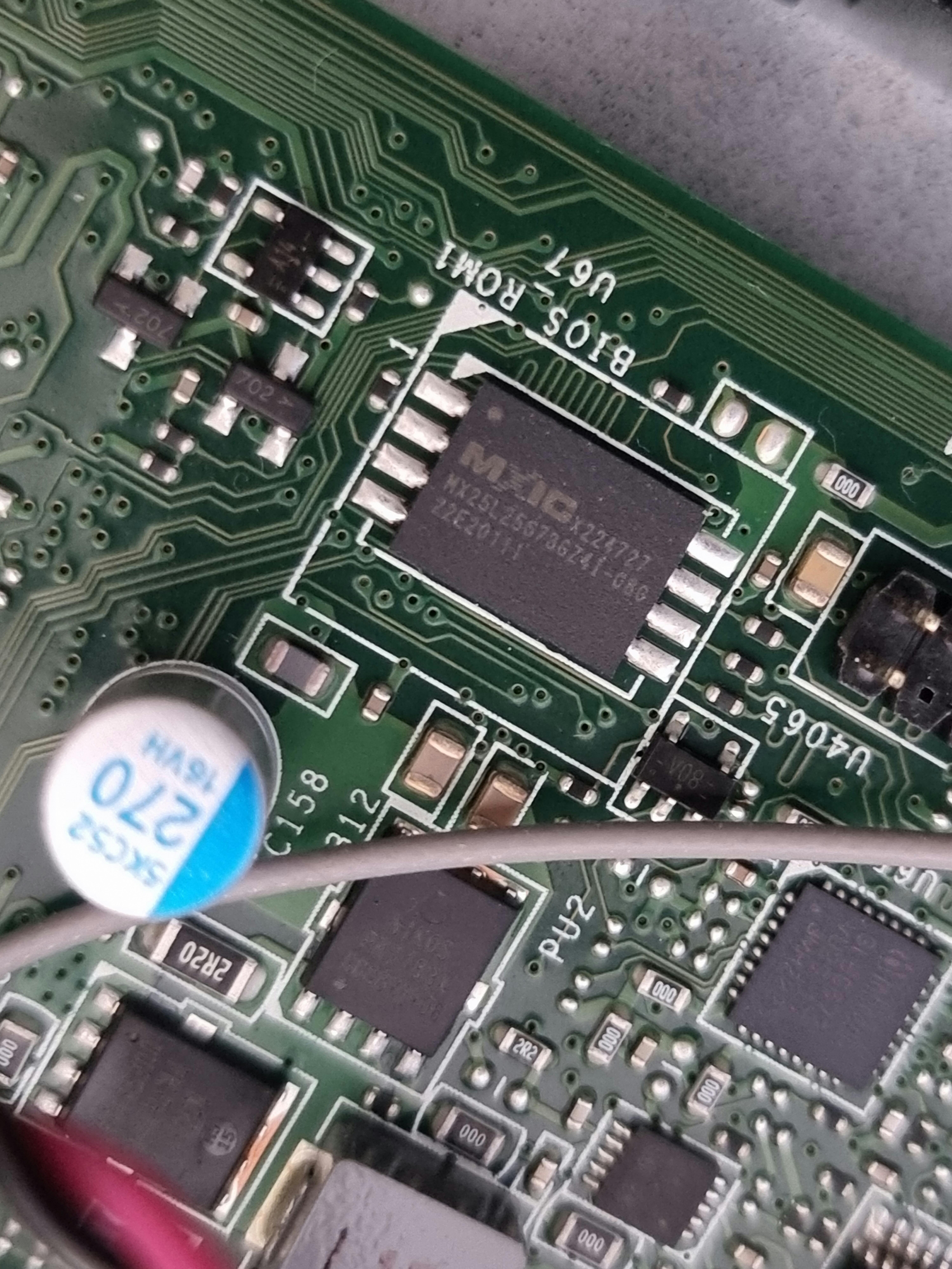 From what I've seen, I have 2 chips on the motherboard, on the bios_rom 1, I have this written on : mxic x224727 mx25l25673gz41-08g