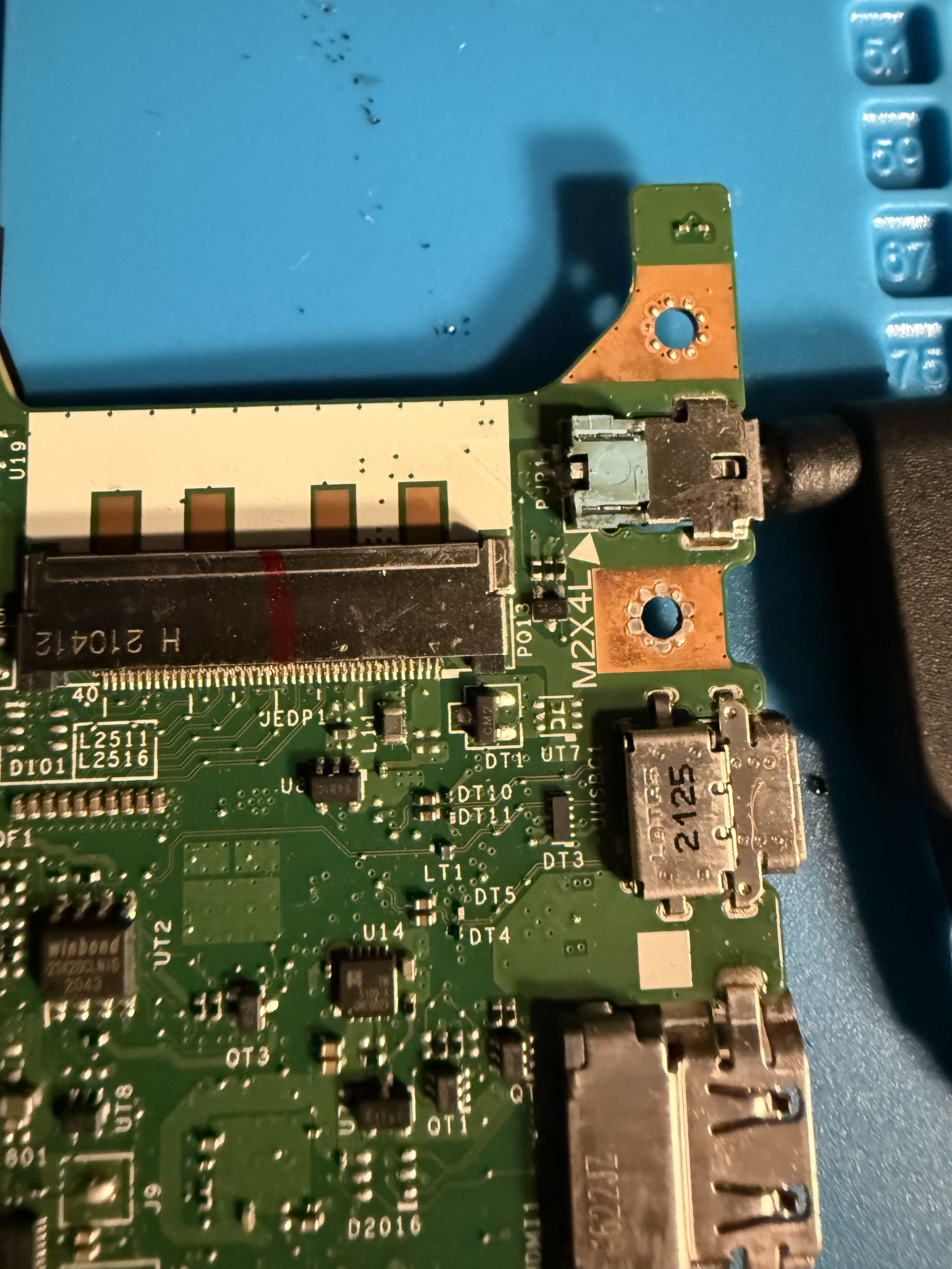 I have attached two good photos (iPhone 16 Pro Max has an excellent camera), in LA-L202P Barrel Jack you will see the port at the top right, then 3 things (I think are fuses) and just below that is what I think to be a 3-pin MOSFET, I get 1.6V across two of those terminals in diode mode on the MM so I think it is good, but like I said, just above it I only get continuity in one of the three fuses. Also attached is LA-L202P underside which shows what I think to be further evidence of a fuse/fuses as it is marked 6C with that little symbol, ChatGPT told me this '100% means its a fuse!' but as we likely all know, ChatGPT isn't that good.