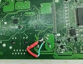 The Samsung S49CG934SU monitor does not power on - no LED indicator activity and no response to power button. However, when 21V power is connected, it immediately draws 0.8A of current with no display output. The motherboard processor gets warm, and there is continuous reading activity from the W25Q128BV BIOS chip.