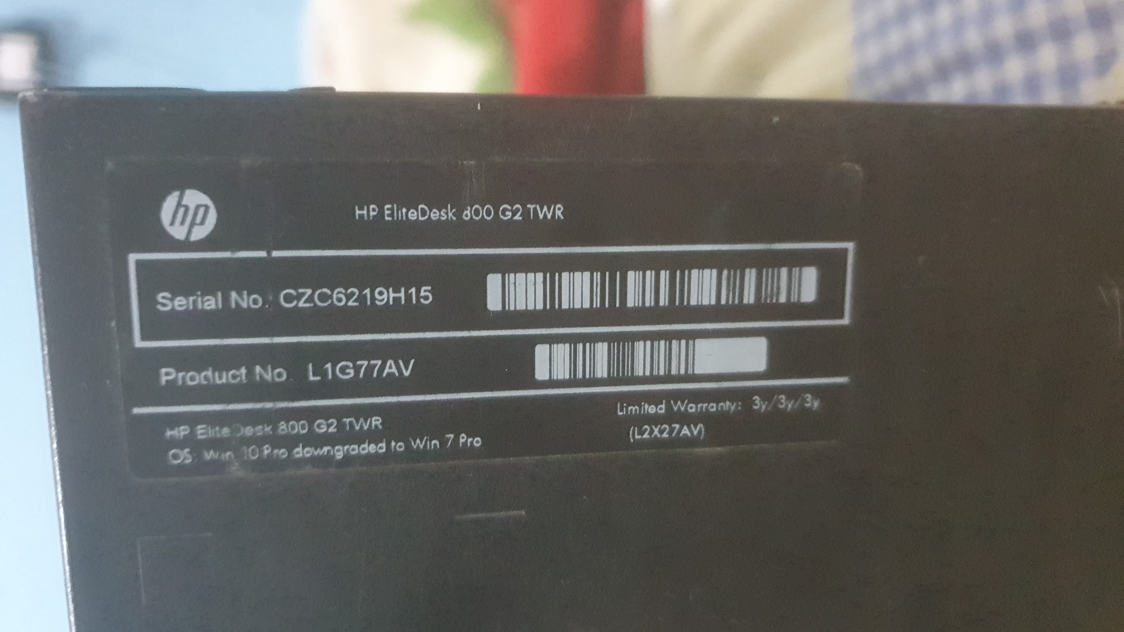 SERIAL CZC6297TVB HP Elitedesk 800G2 SFF​
