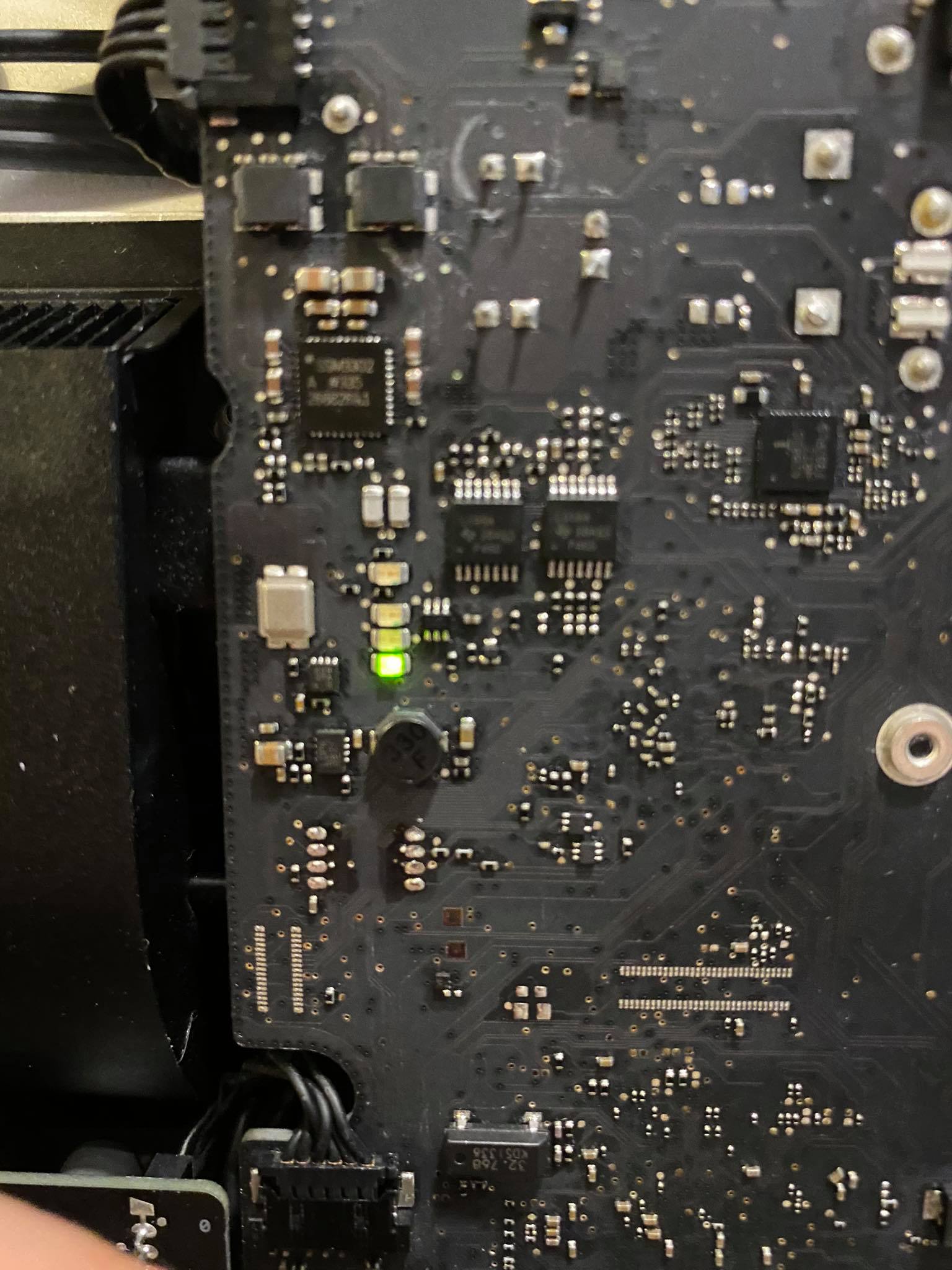 • Board powers on (fans spin, keyboard lights up and can be adjusted, caps lock led lights), but no display or backlight