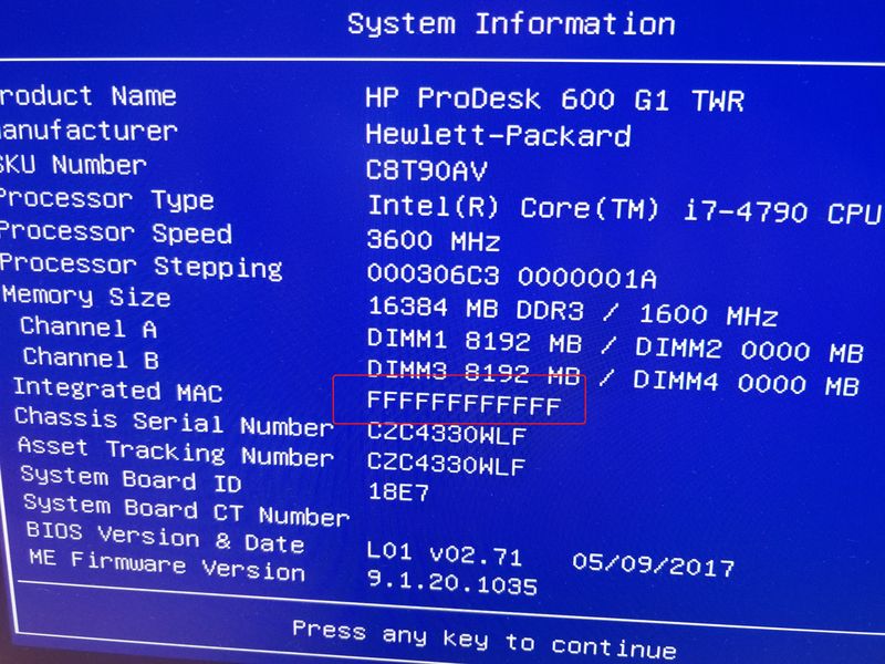 Need Help Restoring BIOS and MAC Address for HP ProDesk 600 G1 SFF