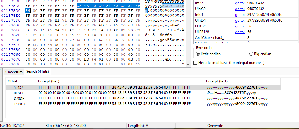 find your .bin series number :8CC912276T with HxD and change