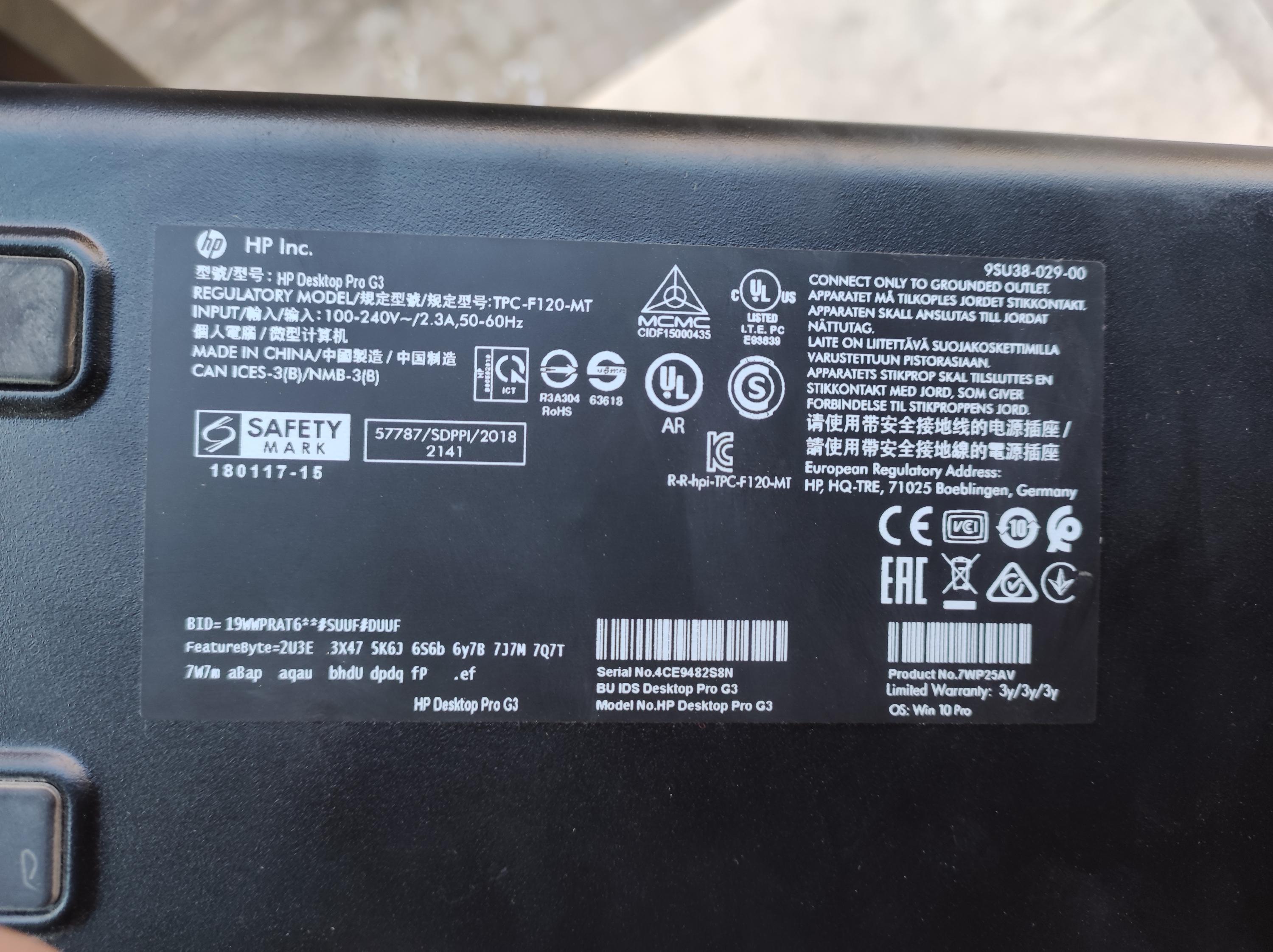 HP Desktop Pro G3 MT