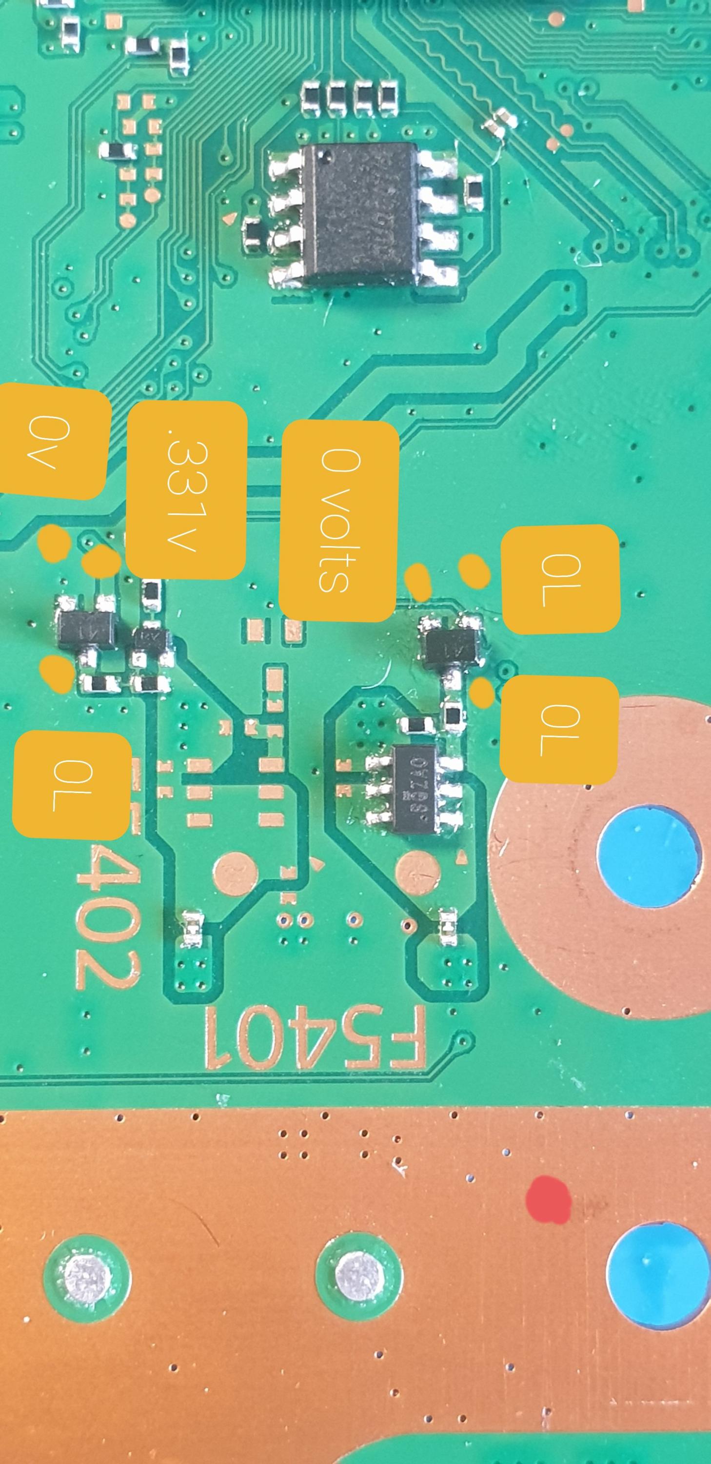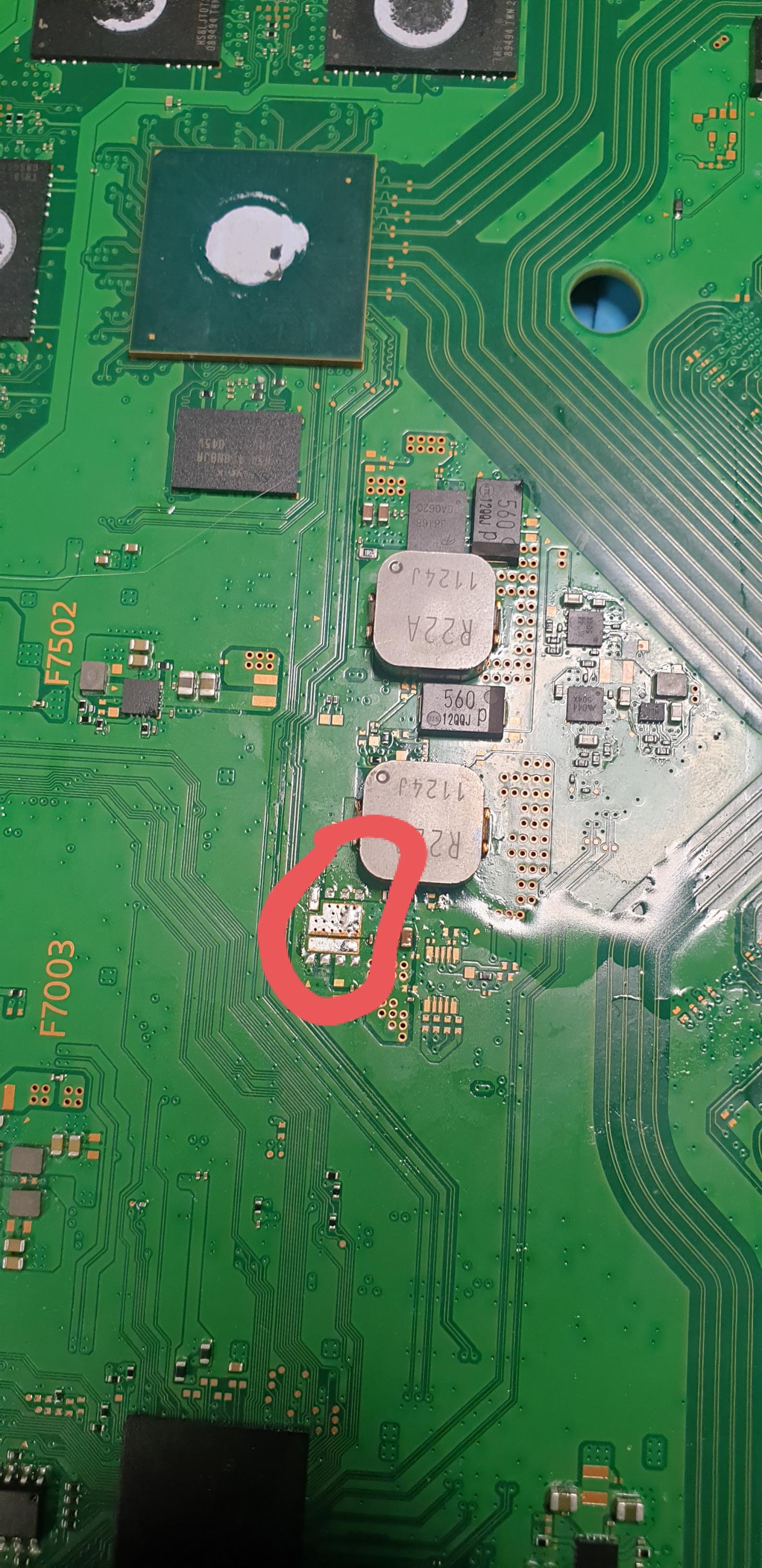 So I've got a ps5 EDM01 here that has no power on the 12v rail. I've noticed that on the back of the board by the power connector, I've got two components missing. Is anyone able to tell me what they are? My ESR meter is showing the other two as around 4pF and I assume they're just ceramic capacitors?