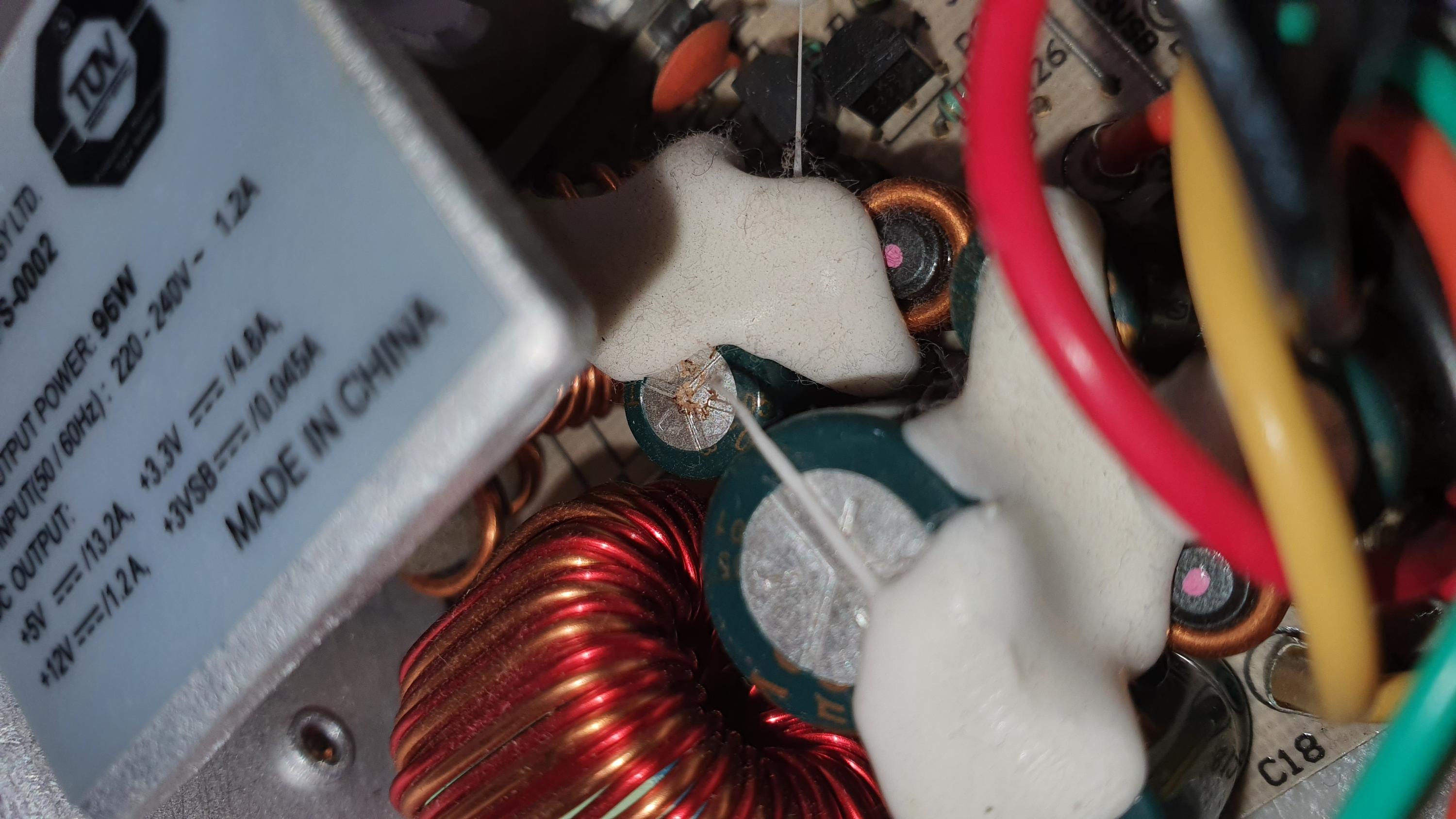 Resistor 25 and 29 are both reading OL, Capacitor 17 and 20 seem to be leaking as seen in the photos.