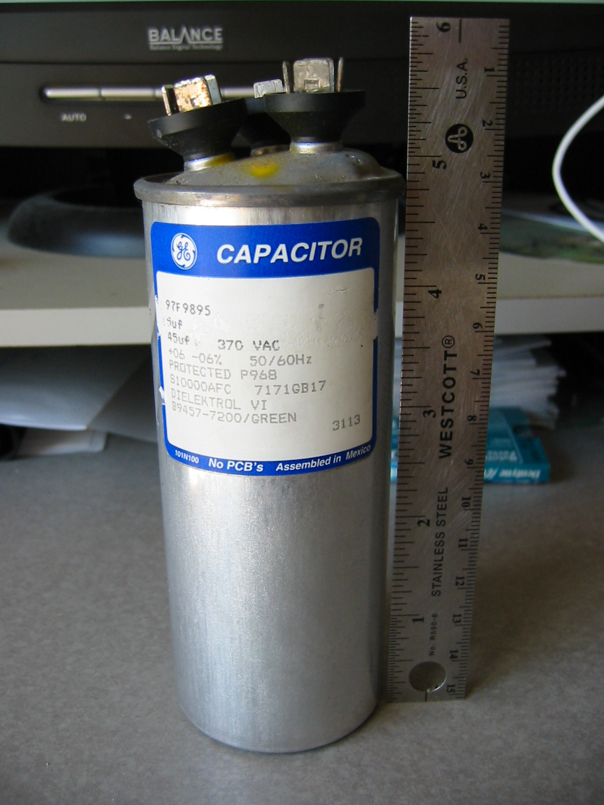 The hot summer days from the heat wave around a month ago here in southern california took its toll on my Air Conditioning unit. I tried to turn it on a few days ago as usual..., but the unit would not start up. A quick call to a friend who services AC units got me back up and running again. There was a bad motor run cap that was obviously bulging