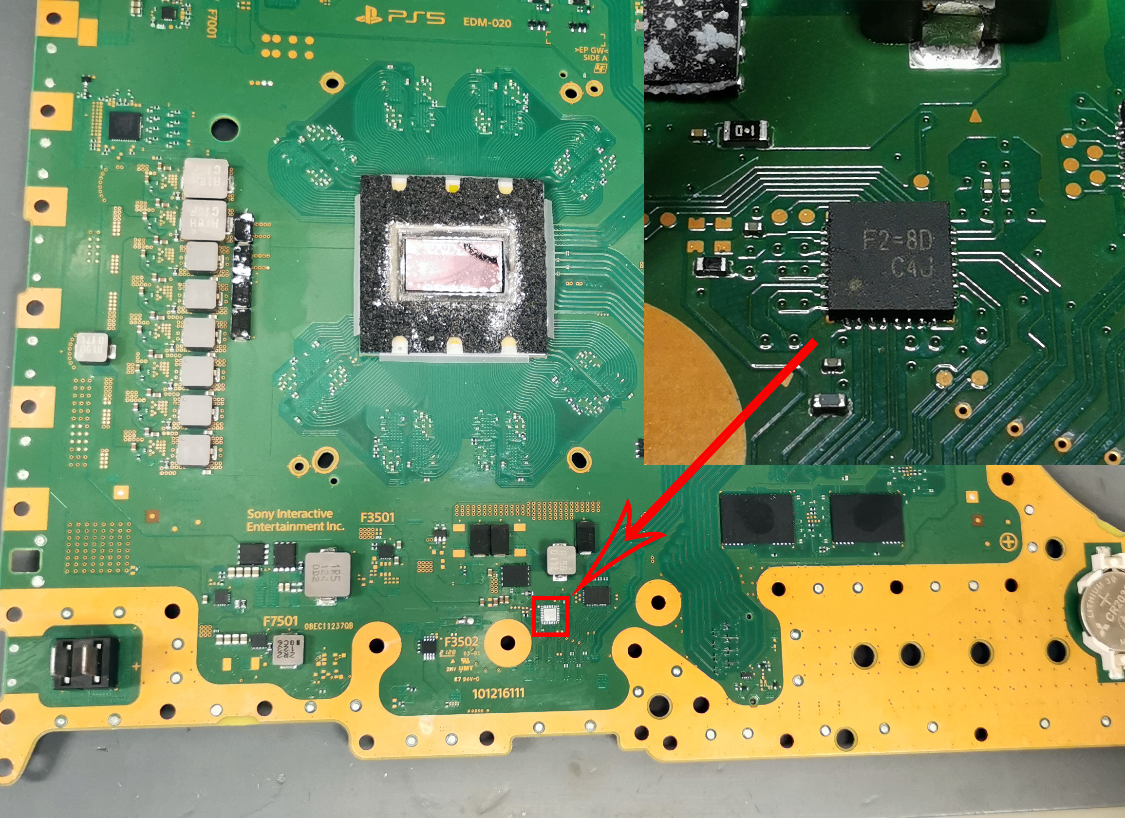 It is from PS5 EDM-020 board, in the front usb section, near F3502.