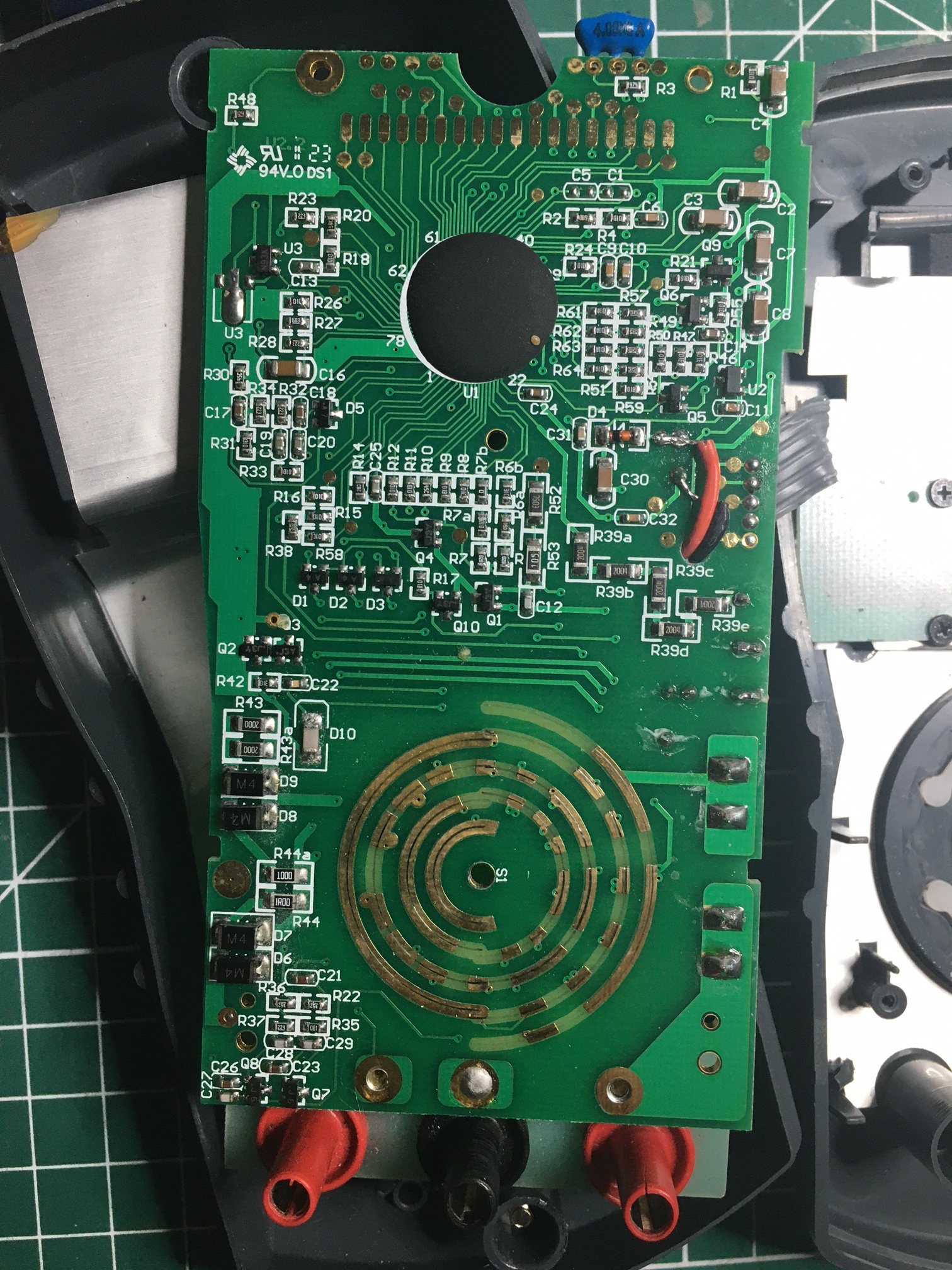 I'm trying to fix a digital multimeter. It was working until I blew the fuse (actually the "buzz" for continuity wasn't working). I've now replaced the fuse but it's acting strangely. When I turn the dial to V, nothing happens. But when I turn to anything else, it makes a continuous, very fast clicking sound - like the piezo buzzer is trying to do something. And at each position of the dial (other than V) there are brief flashes of life on the LCD. It doesn't seem to matter if the probes are connected. I wasn't sure where to start, so I've tested most of the diodes and cleaned the zebra connector on the LCD with alcohol (without removing it). But no change. Any suggestions?