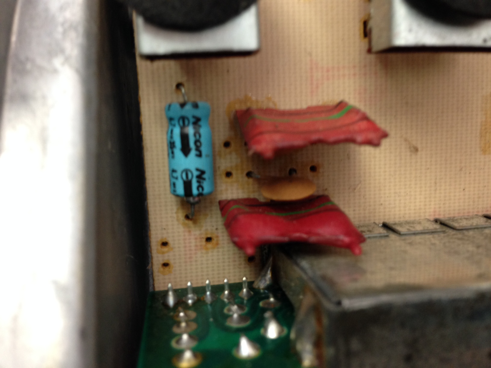 The motherboard had a tag that said aug 5th 1981 so its a older one, the Nicon caps are not leaking and the picture is working fine, might plan a recap in the future with Nichicon VX.