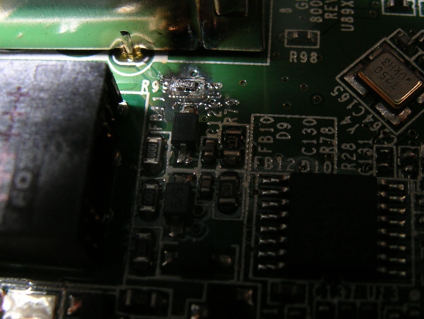 I have two roku 2 players, one was used, another one was not plugged in at all. This night I heard lighting hit really close to house and in the morning Internet modem and roku player was dead. Roku was connected via Ethernet cord, both devices was plugged in surge protected outlet. I opened bad Roku and found what looks like burned resistor, its next to Ethernet port marked R99. I checked that resistor on good player - it shows 0.1 omh. Attached pics are of both good and bad boards.