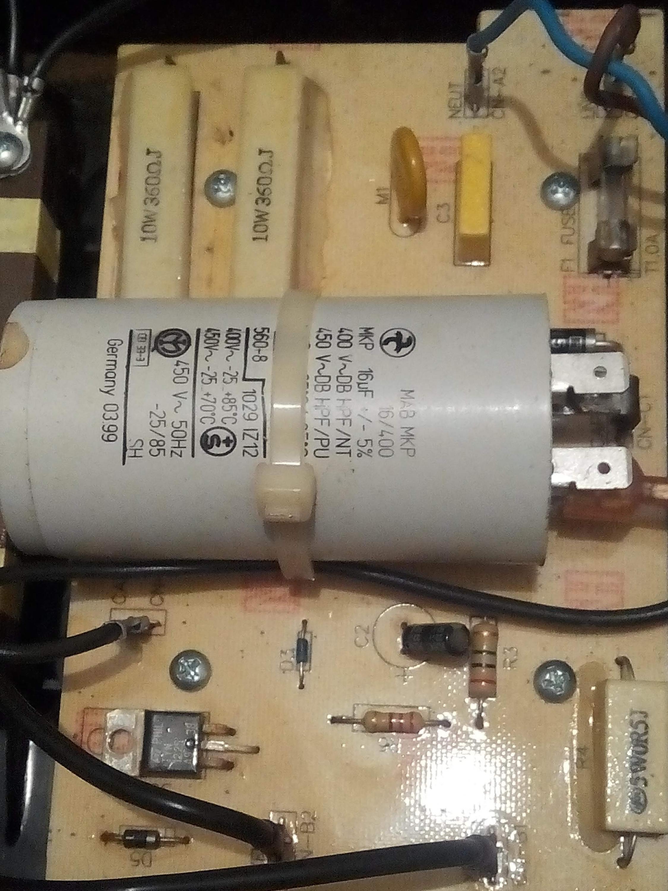 4) Capacitor C2, pulled out and measures 22uF (50V) as marked.