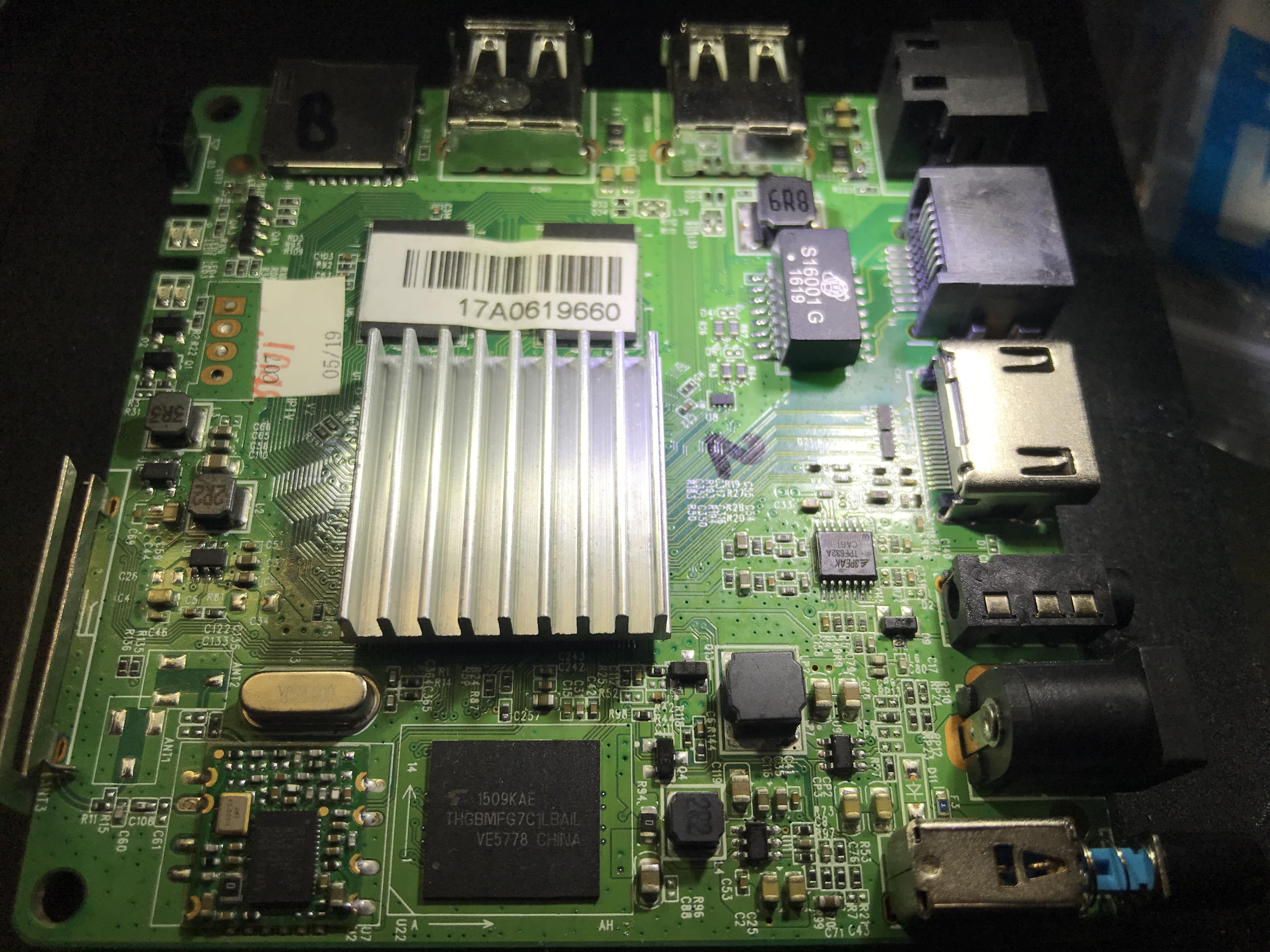 I've got one oft these Dreamlink T1+ android boxes here with 2 green lights on the front as soon as one turns it on. There is no eeprom or spi flash on that thing, just one Essencore i3e-8gth2cmre eMMC that's it. I've did measurement's to no avail, there is no data of any kind going. So I took that eMMC off and put it in my BGA153 programmer. Aaaand? It's dead! Can't read anything from it. I actually turned that android box on without the eMMC and it behaves the same.