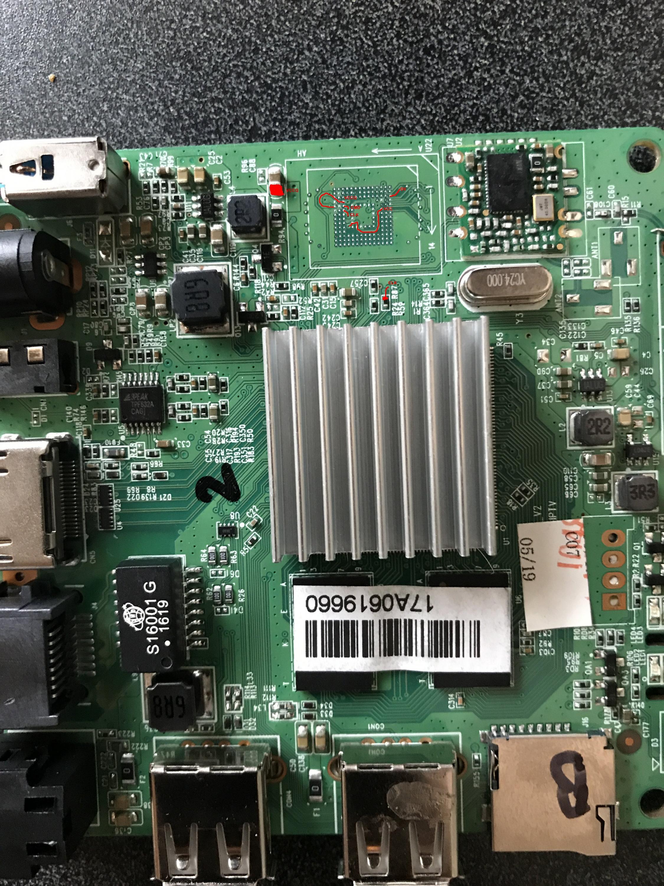 I've got one oft these Dreamlink T1+ android boxes here with 2 green lights on the front as soon as one turns it on. There is no eeprom or spi flash on that thing, just one Essencore i3e-8gth2cmre eMMC that's it. I've did measurement's to no avail, there is no data of any kind going. So I took that eMMC off and put it in my BGA153 programmer. Aaaand? It's dead! Can't read anything from it. I actually turned that android box on without the eMMC and it behaves the same.