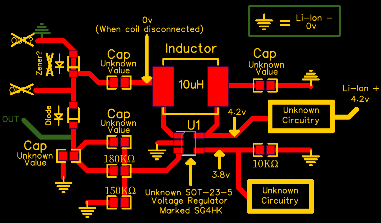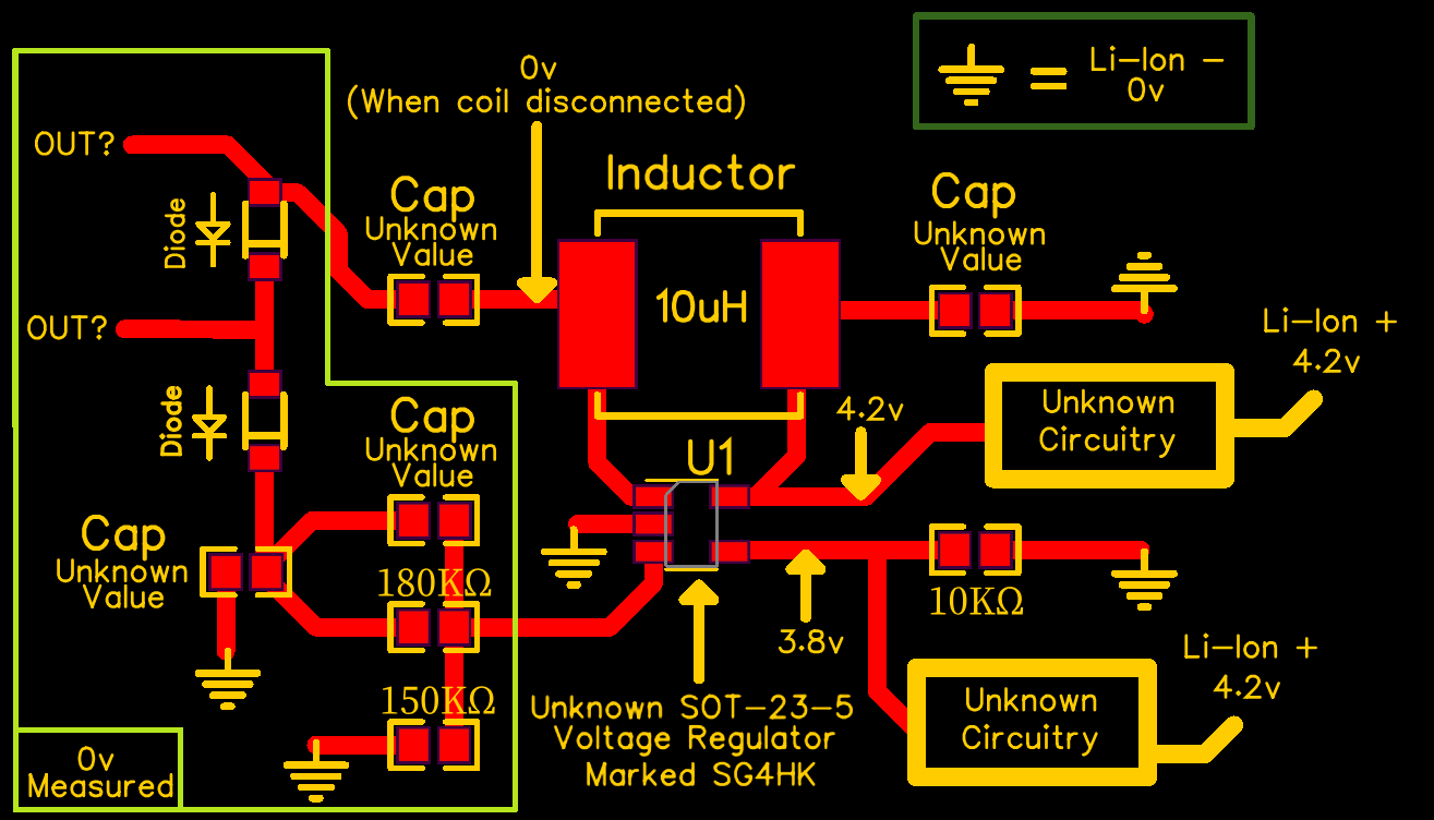 I need to find a way to test the circuitry, in order to find out how much voltage is actually needed, but at the moment I don't even have a good idea of where the output is located.