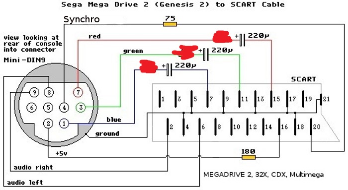 SCART cable, used a 9din cable that I found laying around, think it had a plug similar to what Samsung note 10 uses.