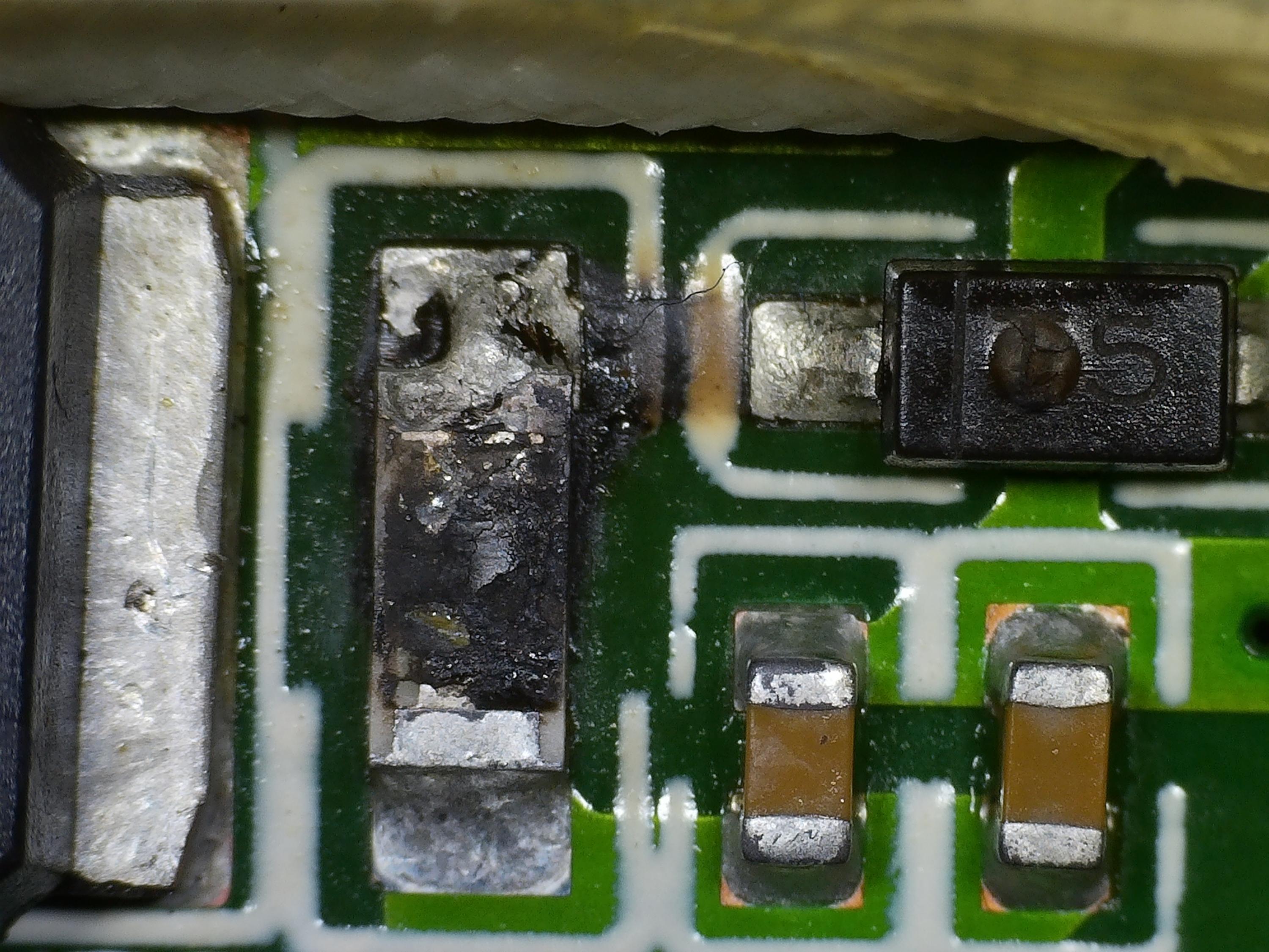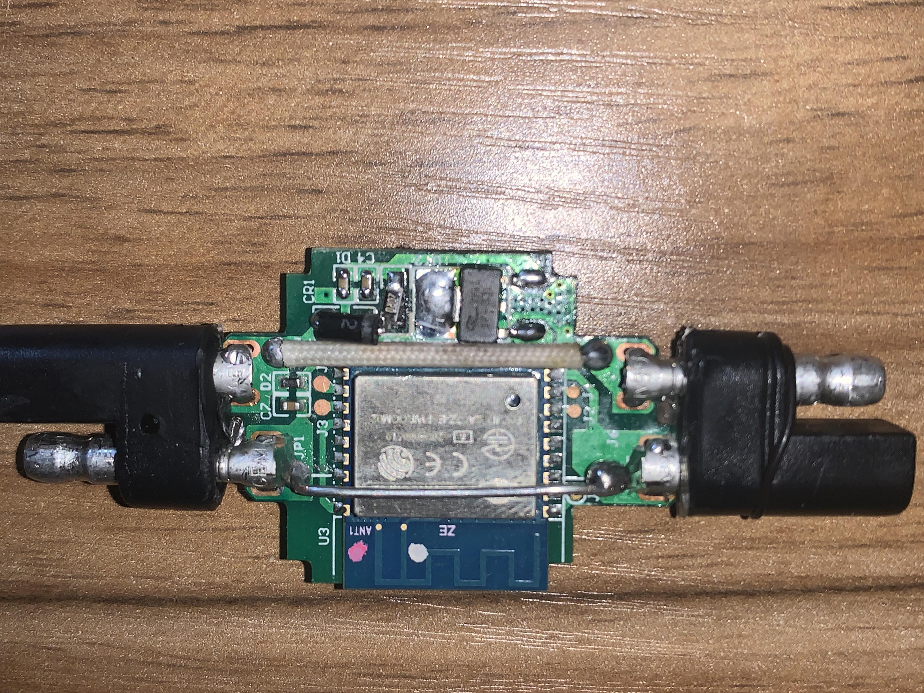 The case is easy to open up, no screws etc., just pry it by the sides. Once it is open the whole thing inside is covered in a see thru silicone of some sort. I was able to cut the silicon and pry it off with some pliers. On the side where the WiFi module sits, is a LM1117 3.3V regulator (Vin was shorted to GND). On the Vin line, there is a fuseable resistor (FUBAR in my case) and a SMD diode marked T5. The fuseable resistor I am guessing is around 20 Ohms or so and the diode is something equivalent to an FR102. Goodie!