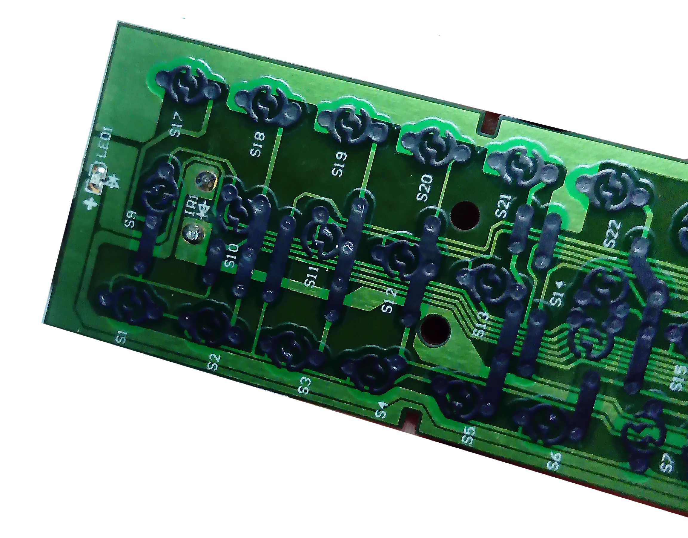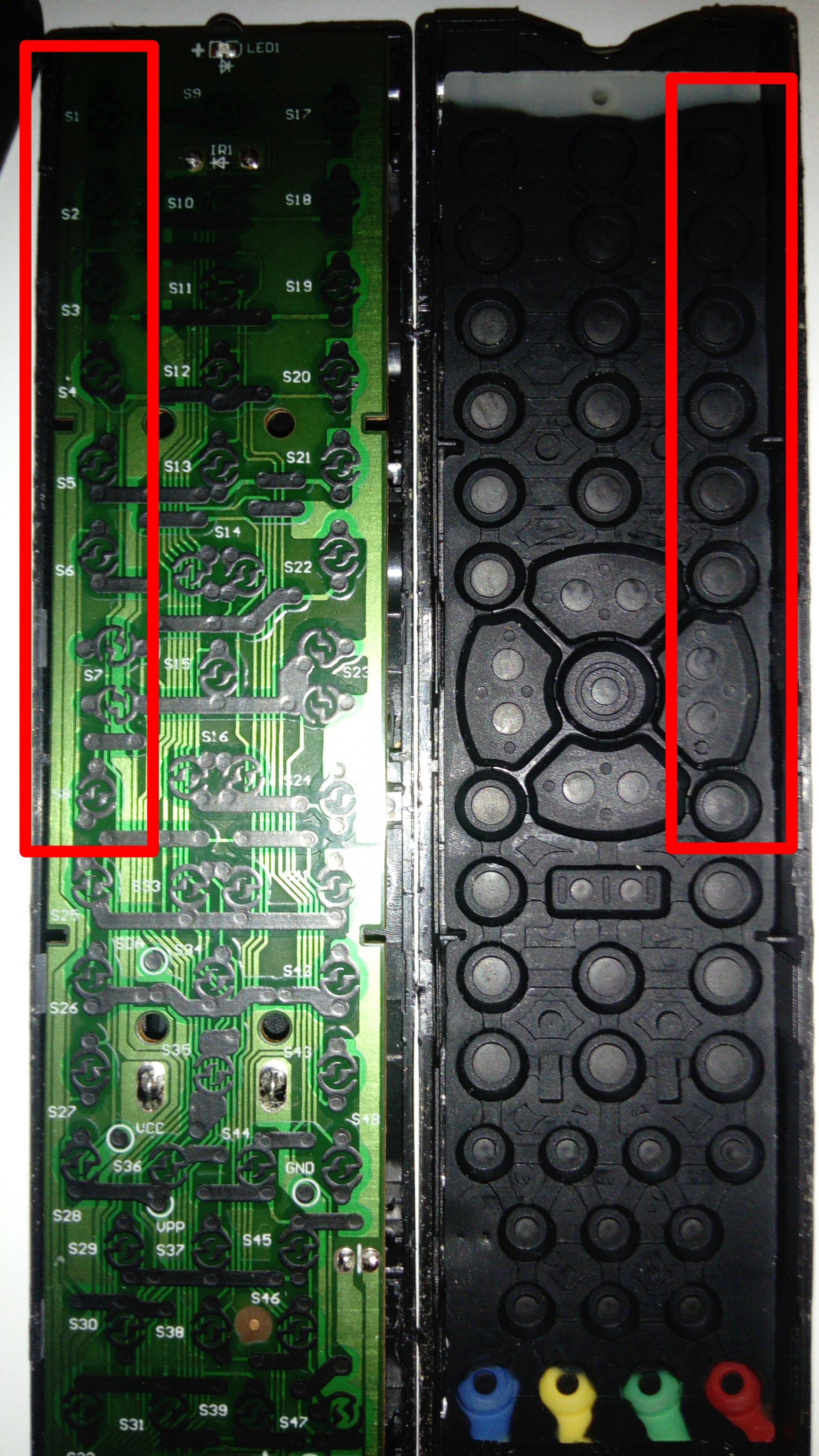 I have this remote for around 10 years. worked fine. few days ago some buttons stopped working. well, buttons are fine because when i try to use same buttons on other positions on board they are working - after disassembling i tried buttons over the board.