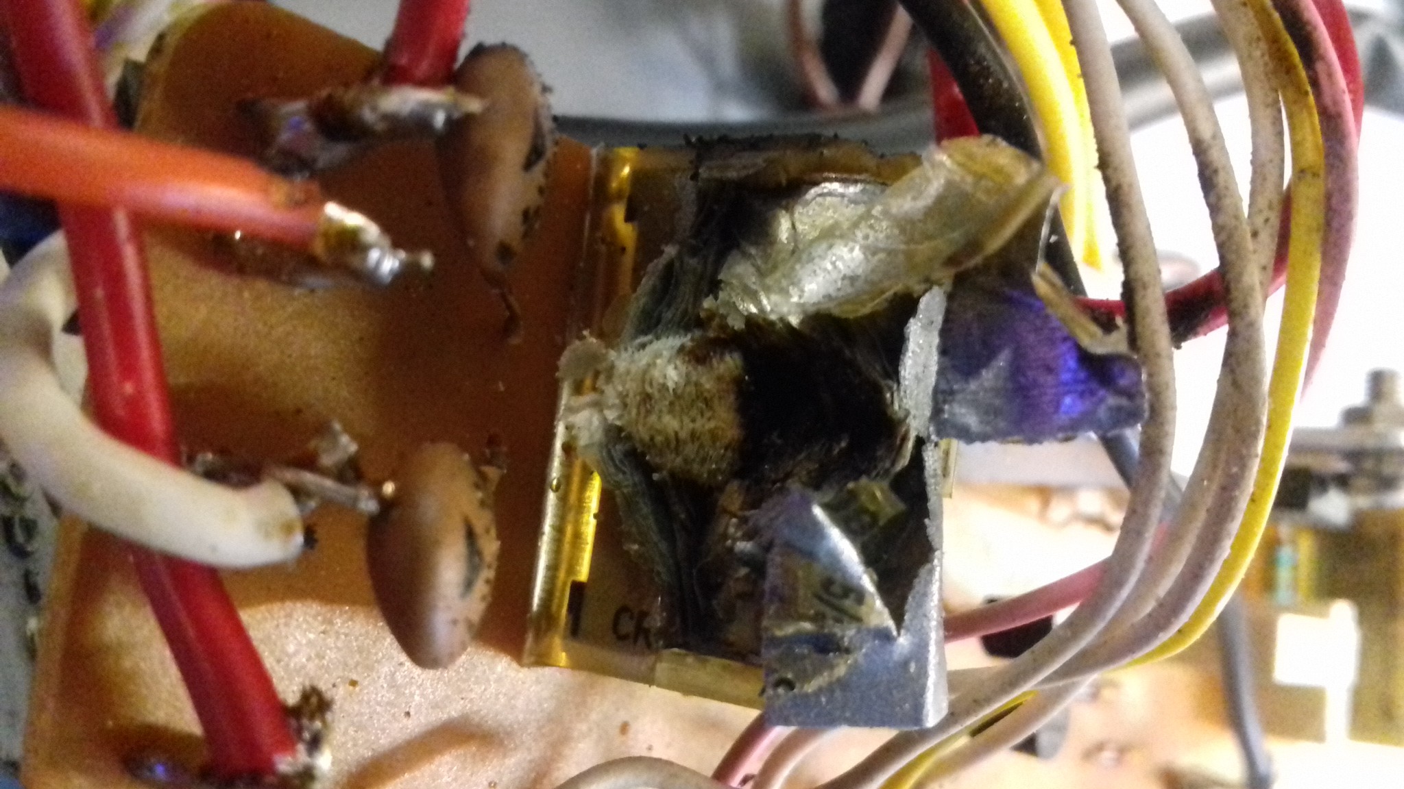 My Mums food processor made a couple of loud bangs and emitted quite a bit of magic smoke a week or so ago. I took it apart to have a look, and as you can see on the attached photos, one of the capacitors on the circuit board blew open.