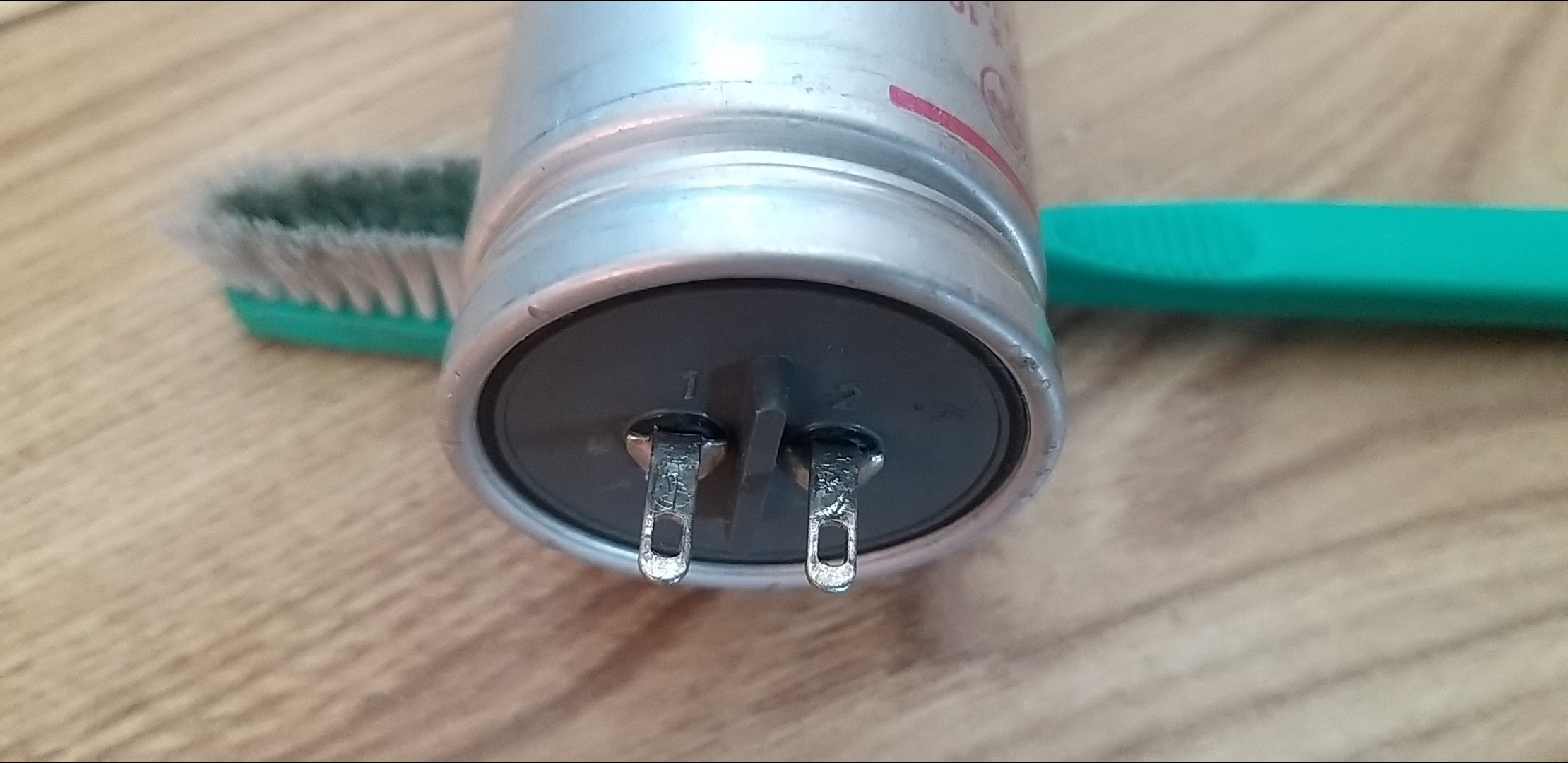 Also need to identify the component in the cap wiring connector, see last photo, which is connected between the 2 cap lugs.