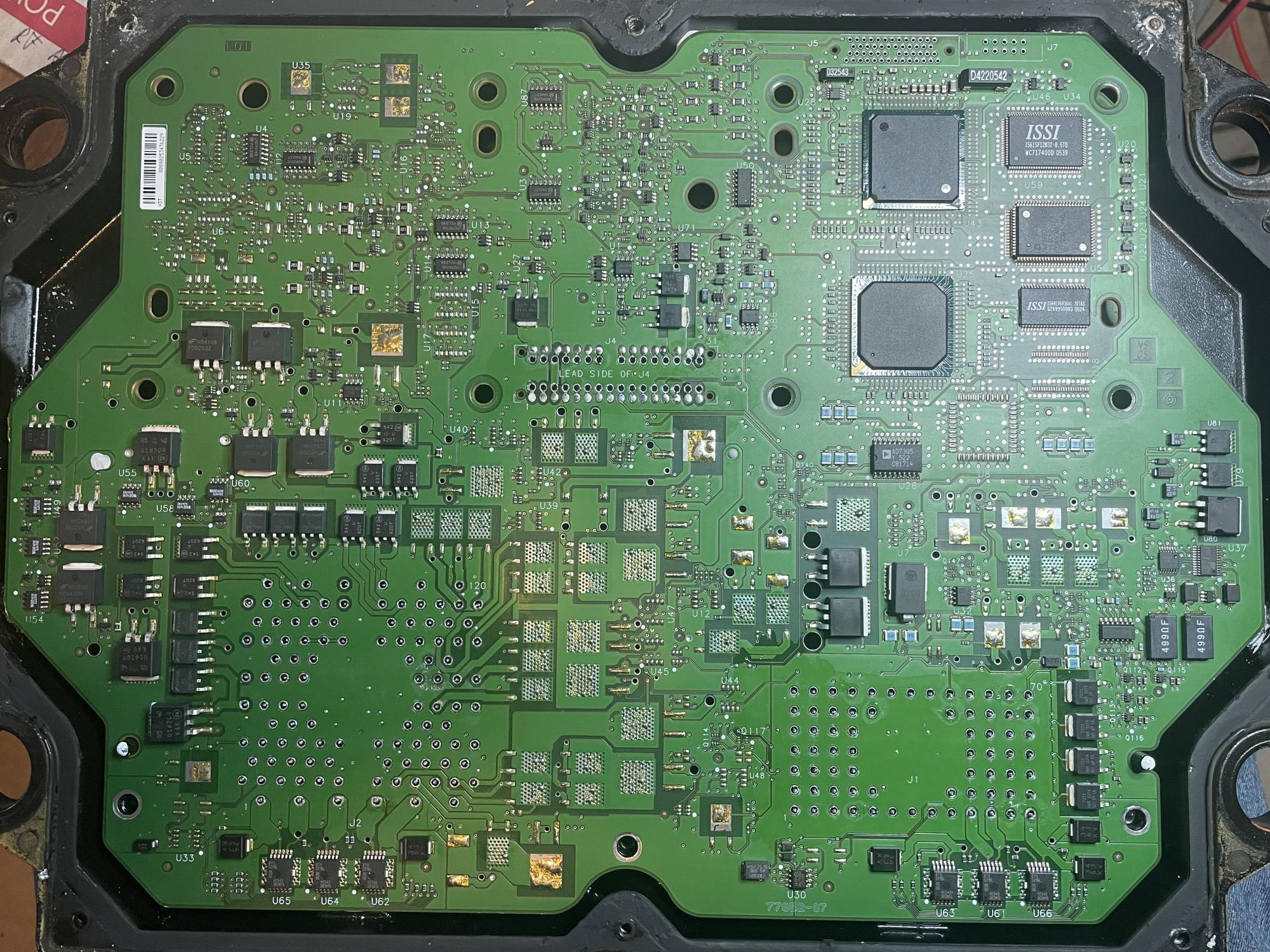 Well here we go: open up the ECU and you get greeted with 70 pins of Catapillar madness! It takes a bit of time to desolder 70 pins and some prying to get it out.