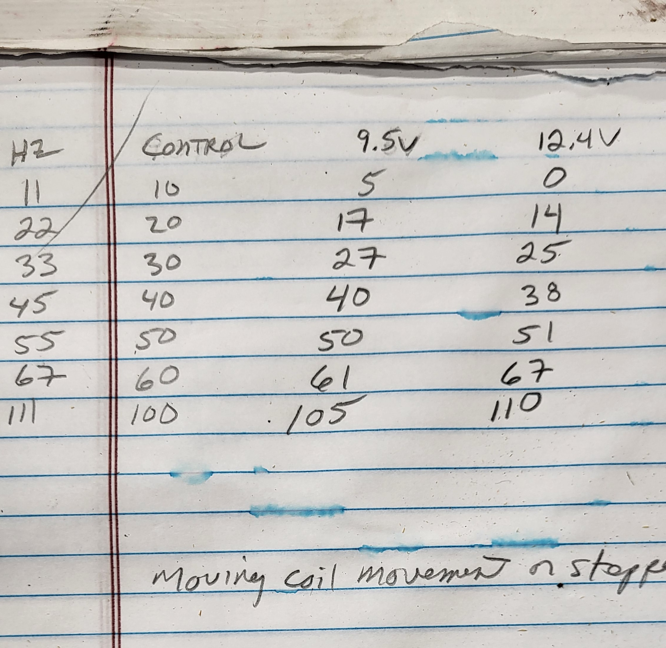 I've included a photo of the findings. The "control" is information I found on the net that correlates expected MPH based on a given hertz.