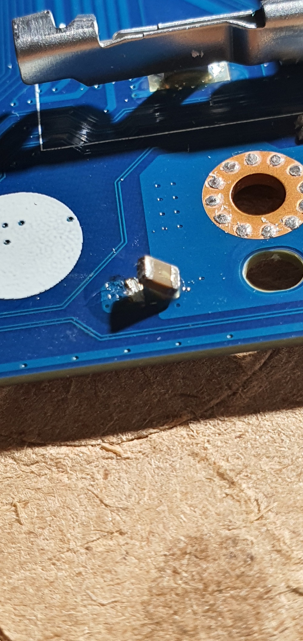 not having any serigraphy in the pcb I can't determine the value of this capacitor to which I post the photos, this capacitor is shorted to ground.