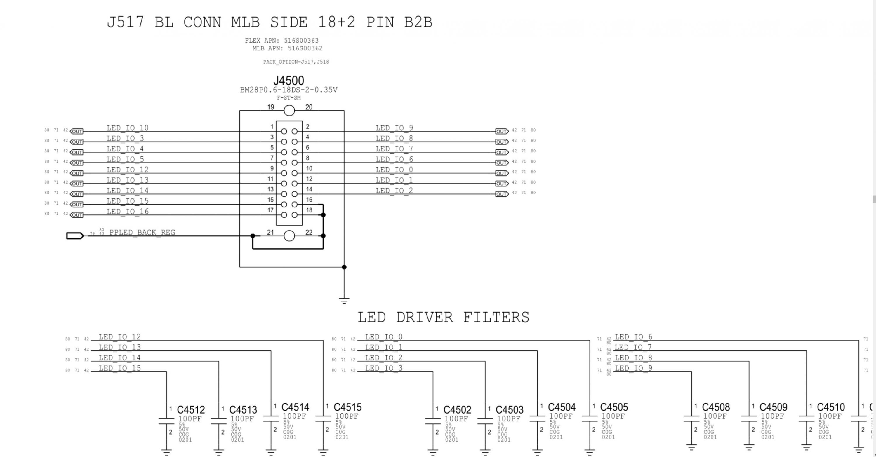 Is the J4500 connector responsible for the backlight? It has the signals PPLED_BACK_REG and LED_IO_1 to LED_IO_16.