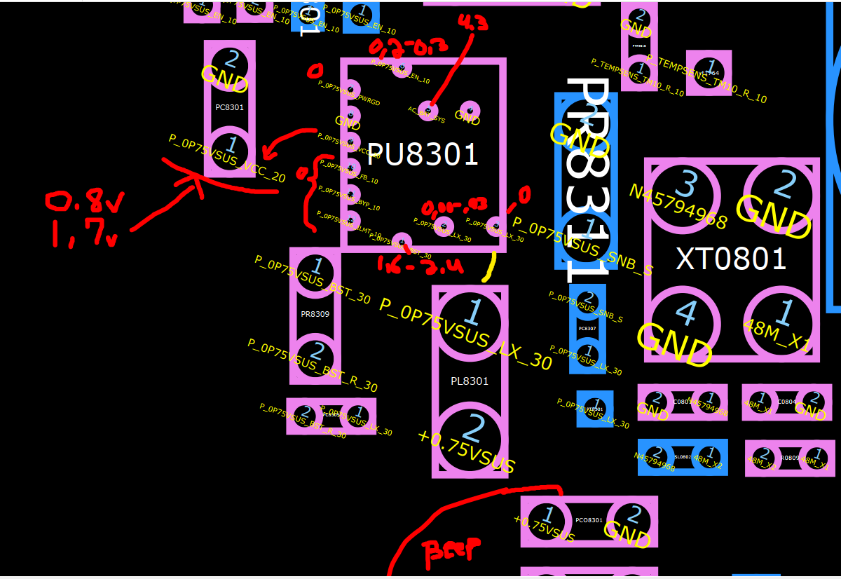 I am trying to diagnose this GA401IV laptop and found that the VOUT (pin 3) on the PU8301 step-down converter has a short to ground. Pin 1 on PCO8301 as well (has continuity to ground). Is the PL8301 coil faulty or is it the PU8301 that is bad?