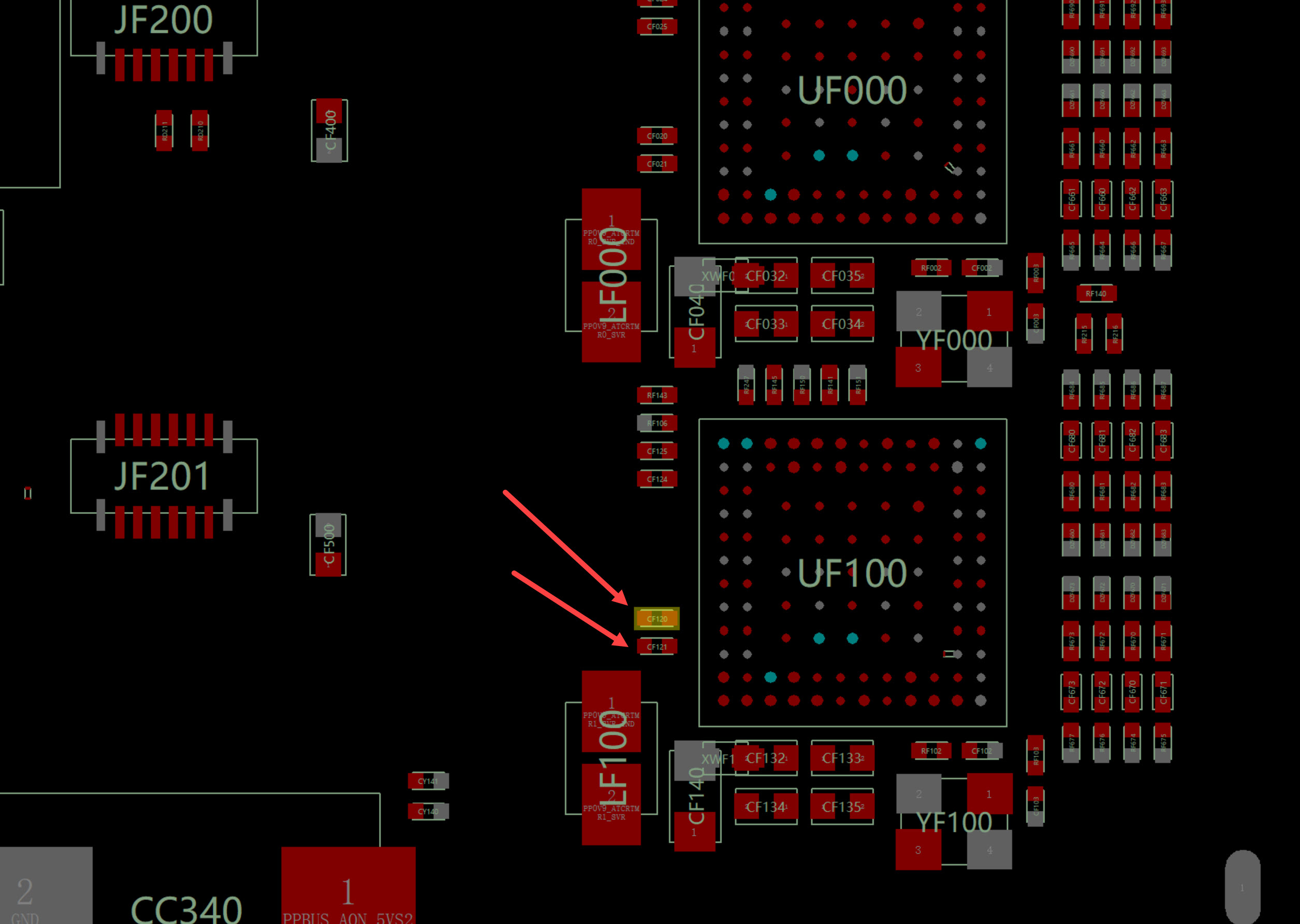 I have a MacBook Pro A2338 with liquid damage. And some parts are broken. including The 2 pcs CF120 and CF 121 USBC_ATC1_R2D_C_P<1>. I have different LogicBoards from which I can take parts. But I can't find you. Can someone tell me exactly what SMD parts are? thanks