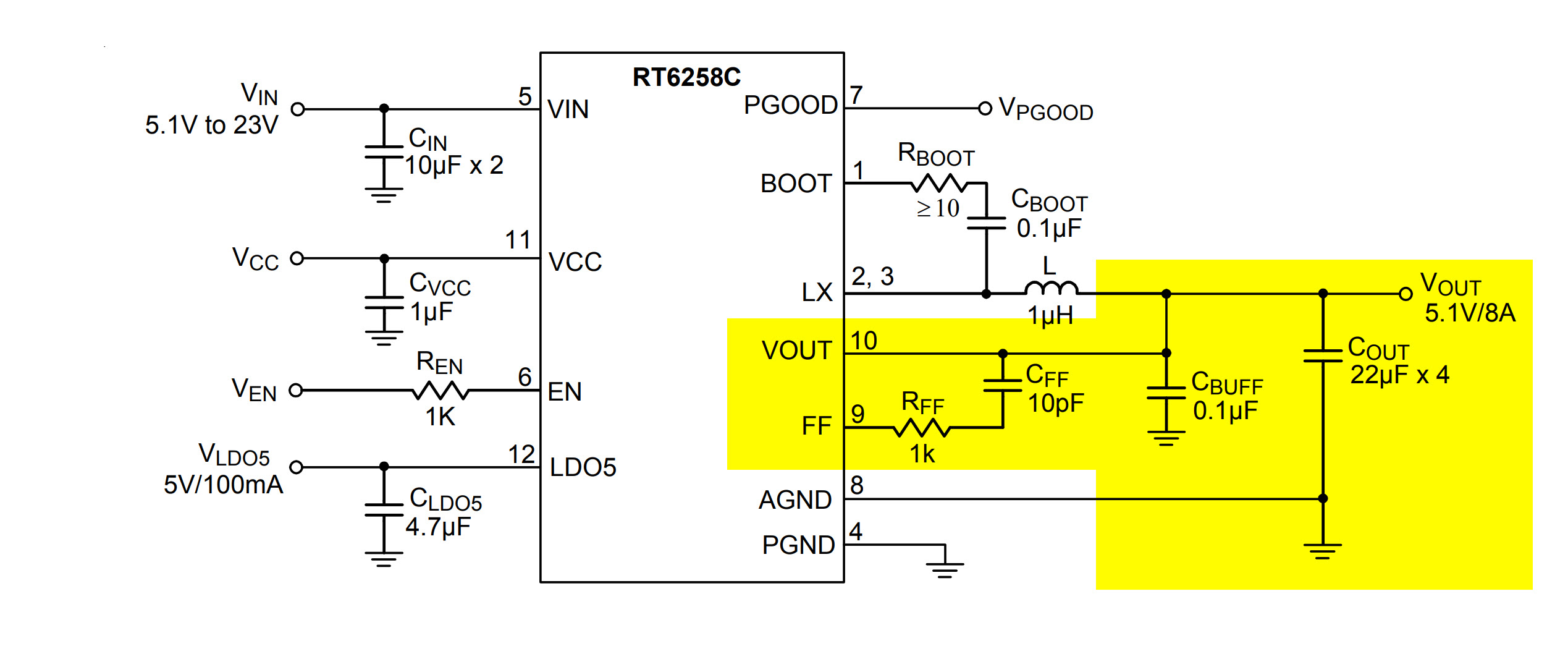 Cbuff directly to the pin 10 of LJ and Cff with Rff not present