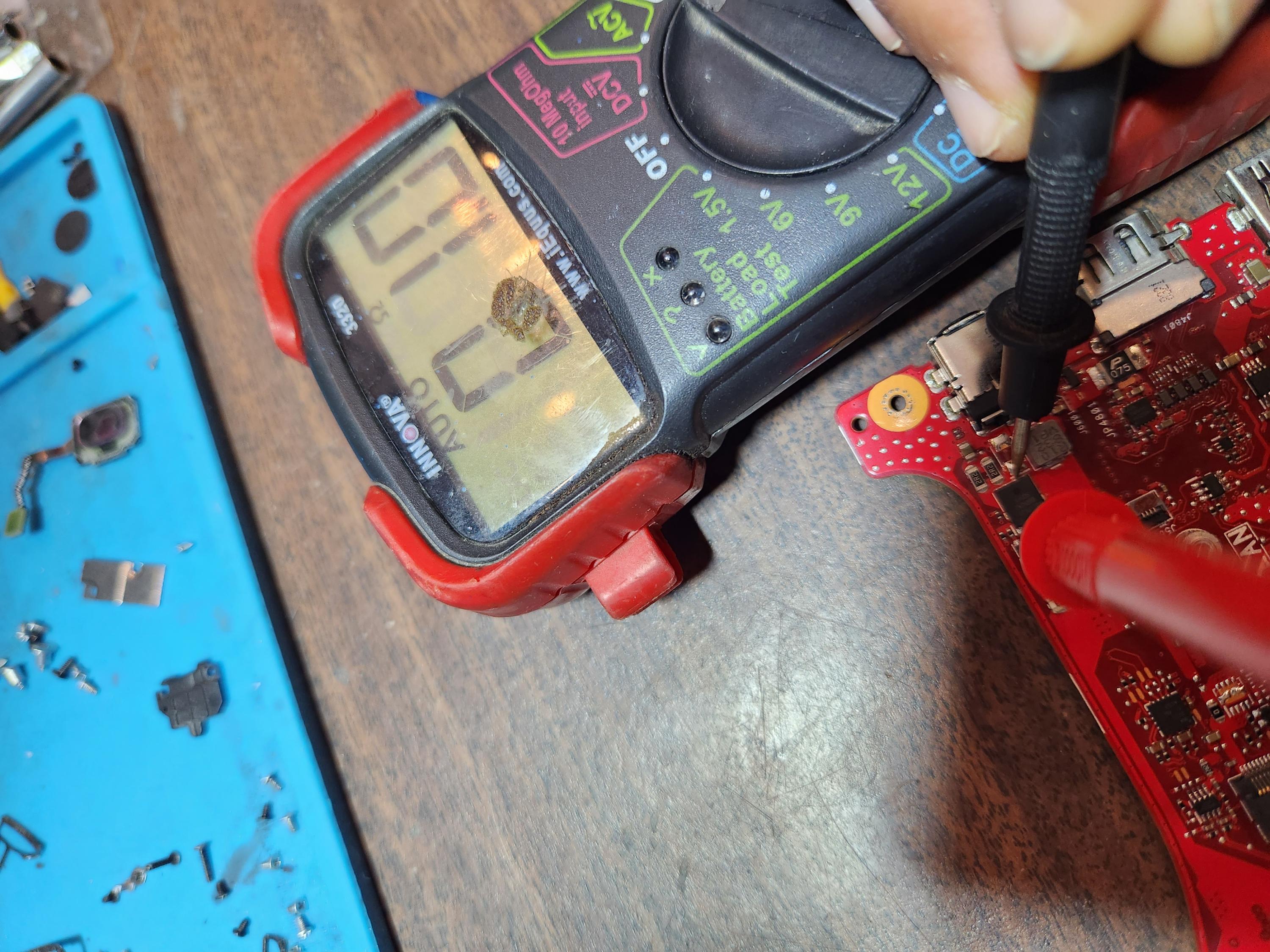i assumed that larger mosfet near the charger port was shorted but i learned thats not the correct way to measure by continuity mode. So i measured in diode mode to source and gate and its 0.9v . And on Drain its 0.4v on the left one and 0.9v on the right mosfet. So for the right mosfet its 0.9v all around basically is that normal?