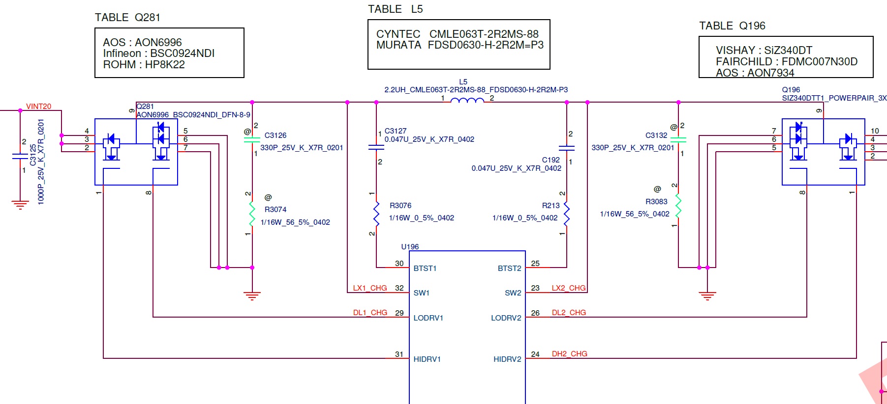 Such a problem when connecting type c, the power button flashes three times, after Q281 AON6996 dualmosfet not out 20v on L5, this voltage is low 0.432v and there is only TPS51393PRJER 3.3v on L135 VCC3M there are no other voltages. I changed Q281 charger BQ25700 also flashed ec but it didn’t help.