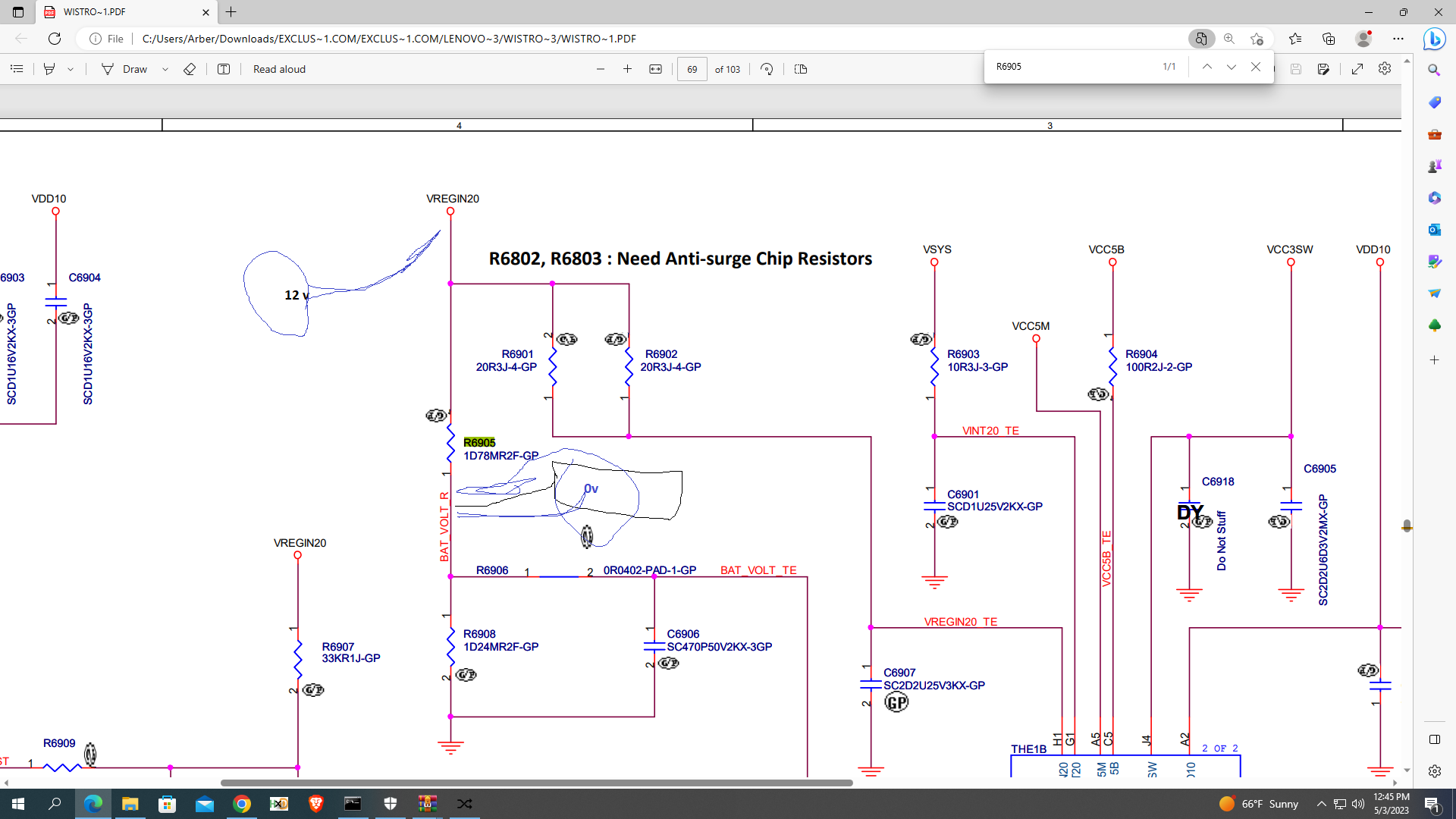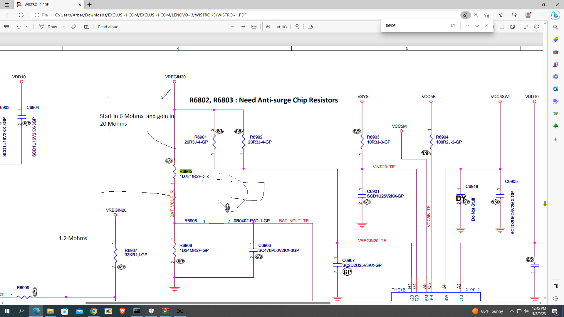 Yes from VREGIN20 to pin 2 R6905 is ohms
