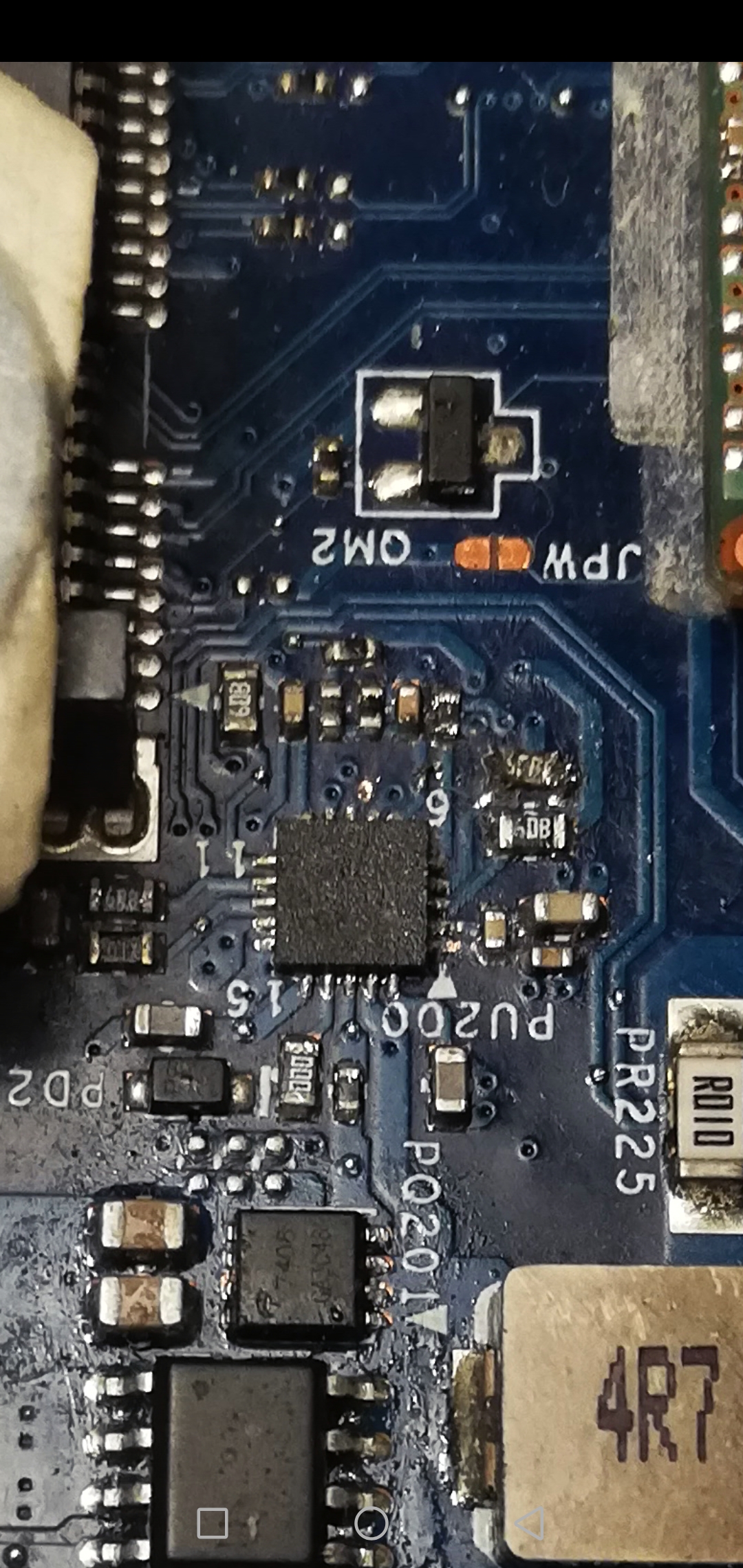 when the battery is charging and I notice it from the amber power light. Anyway, i put the resistor back on pin 4 and cleaned a bit and now on ACDRV the 25V is back but with the adapter charging. I waited for the charging indicator to go out and the voltage on the ACDRV is now 3.19V