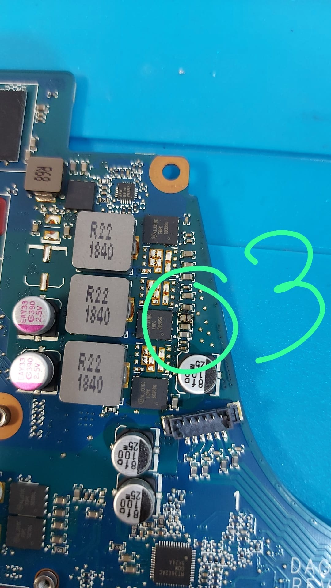 An HP Pavilion - 15-bc414nq laptop that restarts every second came into service. I took it apart and found 3 burnt capacitors on the 19v line. I took them down. Now the laptop starts and restarts once after 20 seconds, after the restart it stays for 20 seconds and then stops.