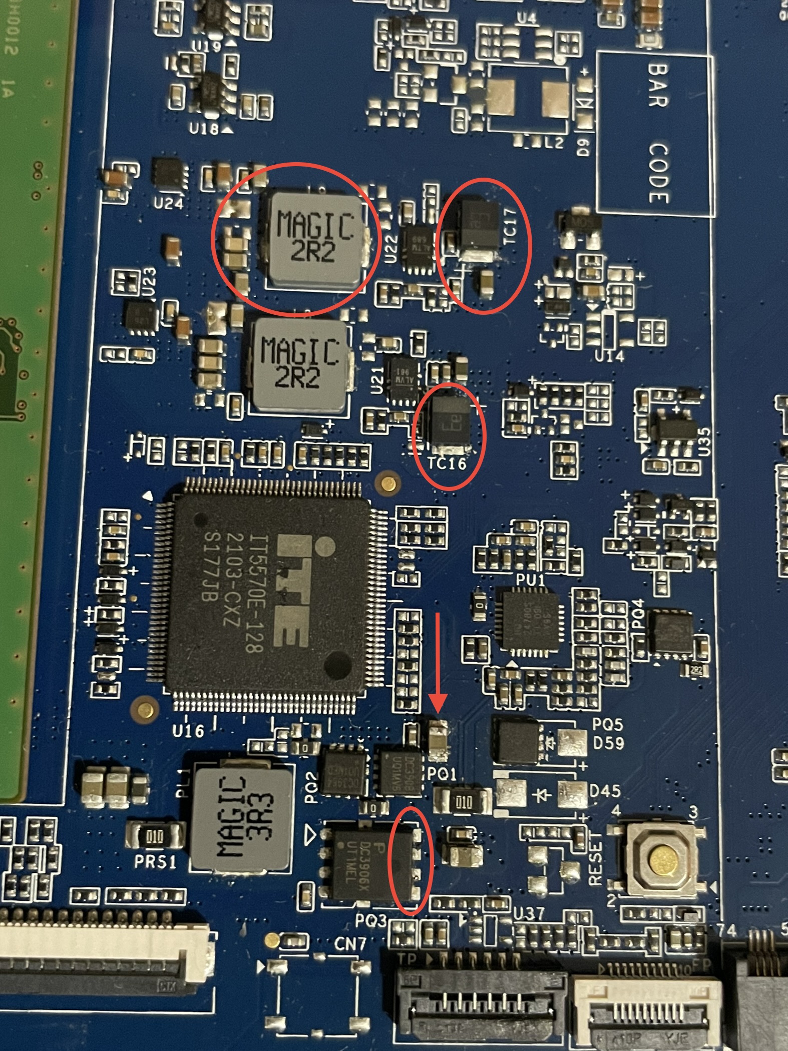 I have a short to ground on inductor L9, TC17, TC16 and several caps around.