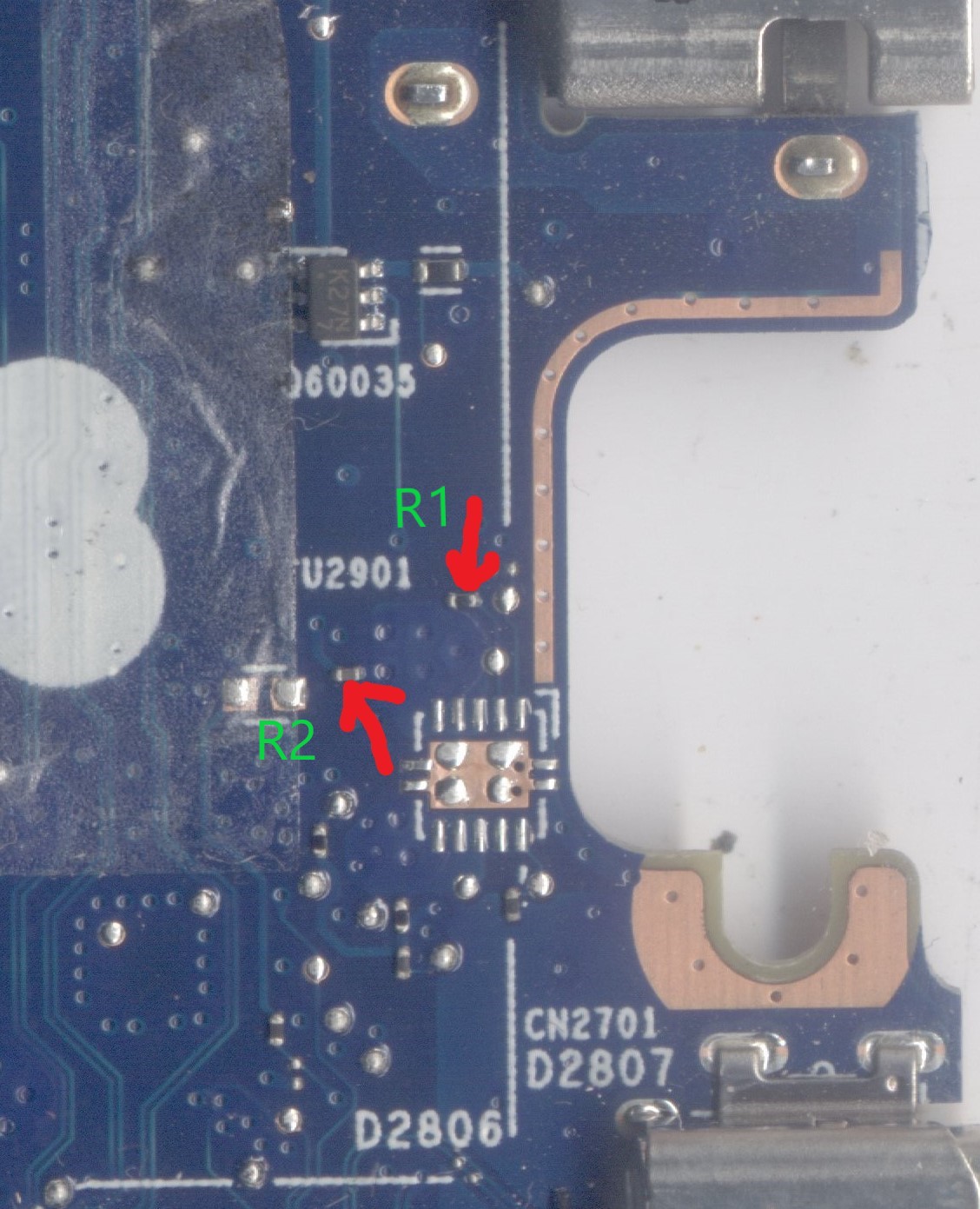 I have an HP 1030 G2 and i am missing 2 resistors on the motherboard. Can anyone help me with the value of the two resistors in the attached photo?